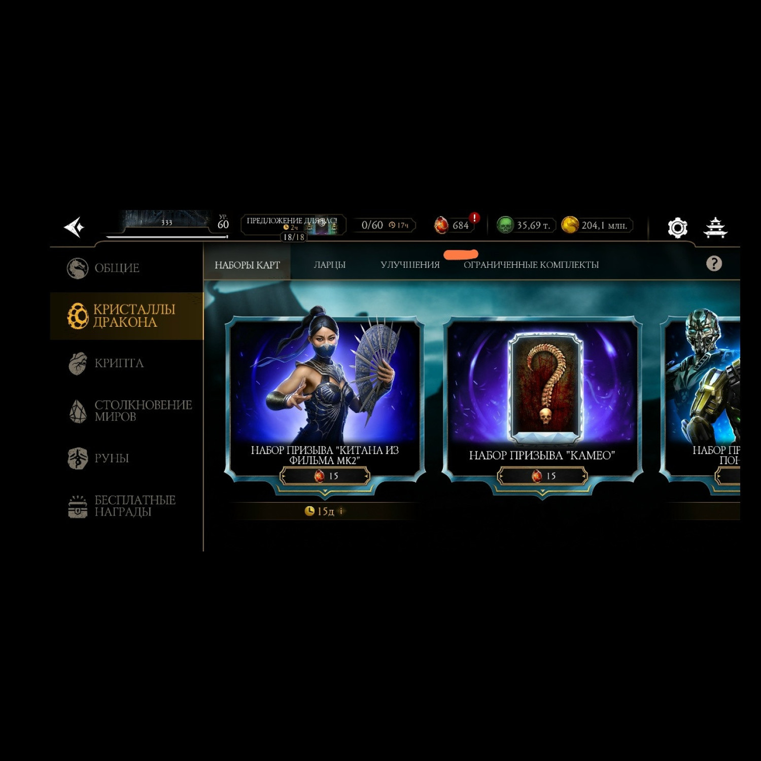 5 карт с вознесением, скорпион Ханзо Хасаши максимального 5 слияния вознесения. Есть Вся редкая именная снаряга + 6 934 карт уровней + 35.7 к душ и 684 кристалла дракона для дальнейшей игры)