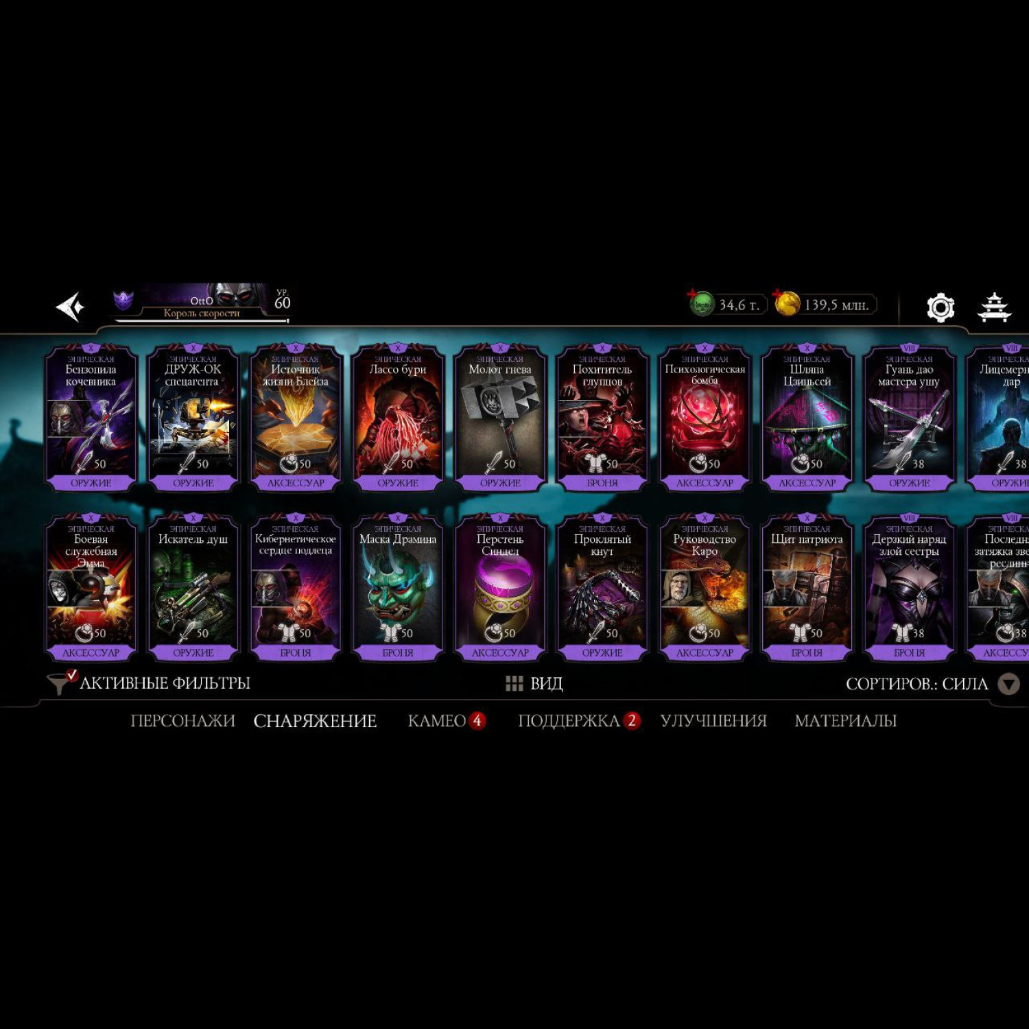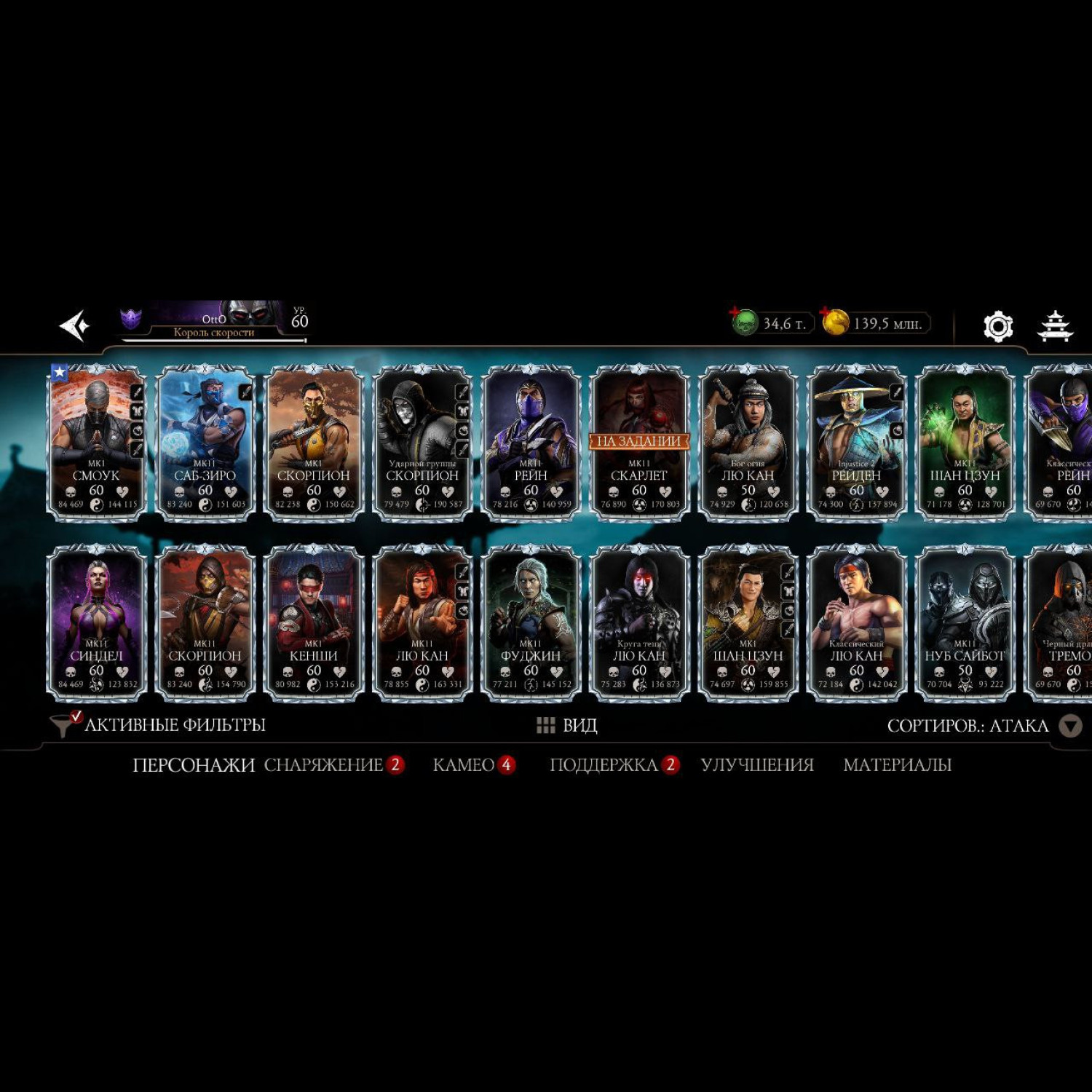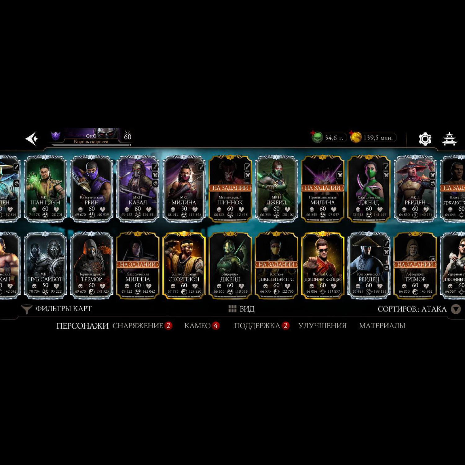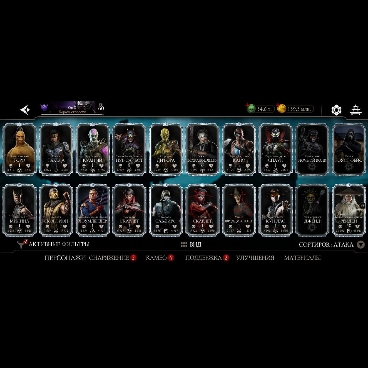 Очень прокаченный аккаунт от МК Мобайл, много эпик снаряги башни Х слияния, последних особенно, 30 алмазок на Х слиянии, соответственно остальные тоже хорошо вкачены, много на 9 слиянии, также 30к+ душ на акке есть. Бруталити/френдшип: Кабал, Кейси Кейдж, Рейдан, Кано, Милина, Кун лао, Лю Кан, Рейн, Джакс Бригс, Кенши, Куан чи, Джейд, Китана, Скарлет, Джейсон Вурхиз, Скопион, Саб зиро, Шан цунг, Рептилия, Синдел, Смоук, Башня Времени, Соня Блейд, Нуб сайбот, Ночной Волк, Джонни кейдж, Эррон Блэк