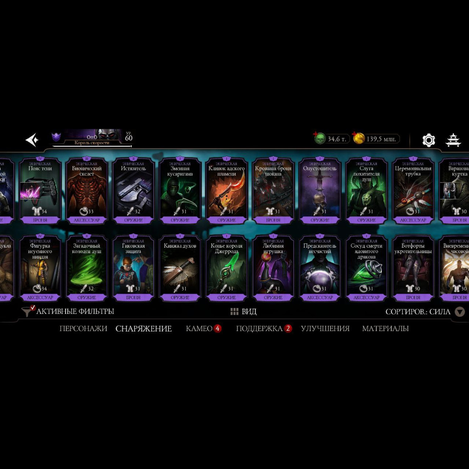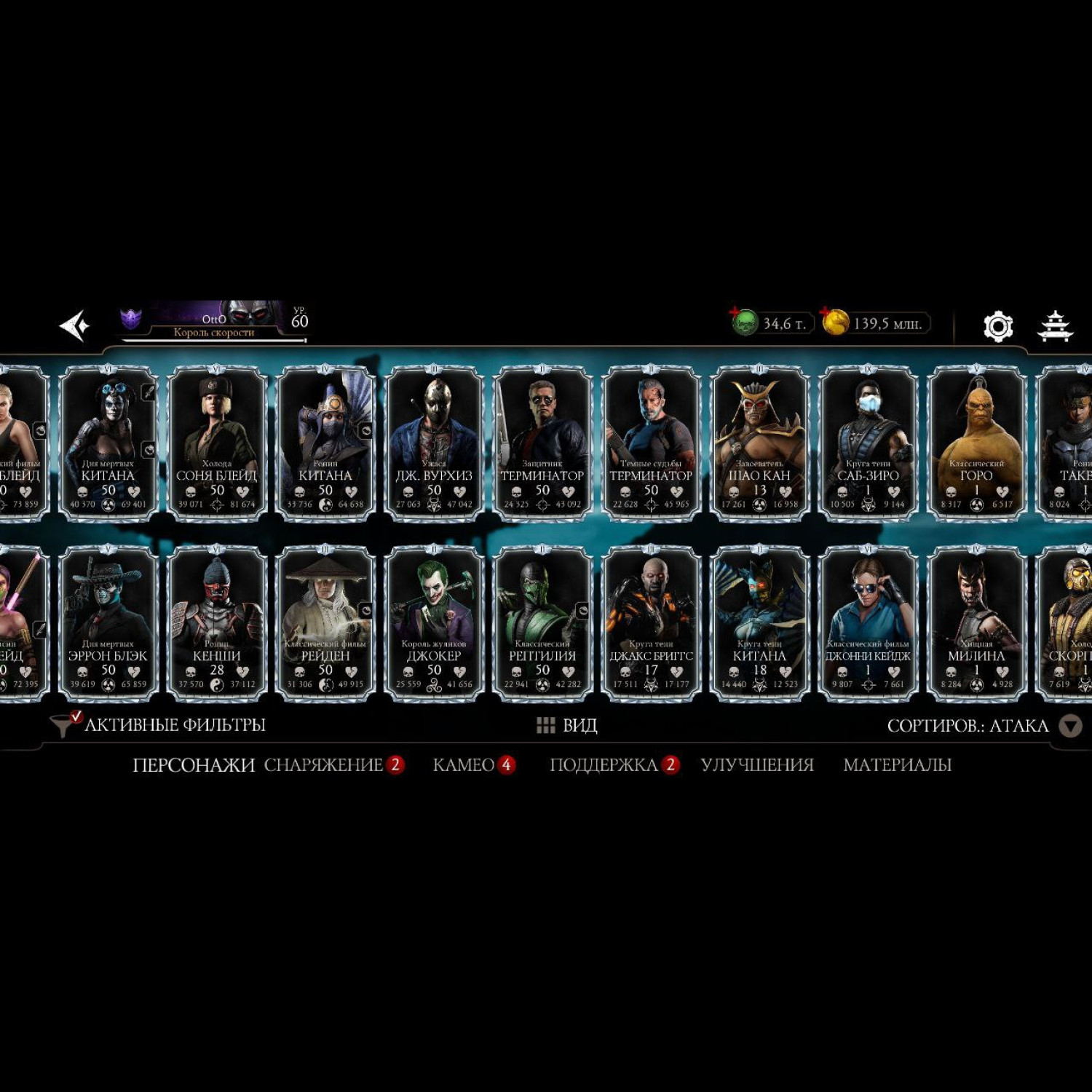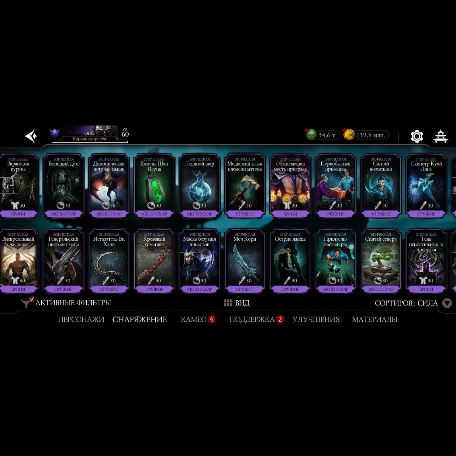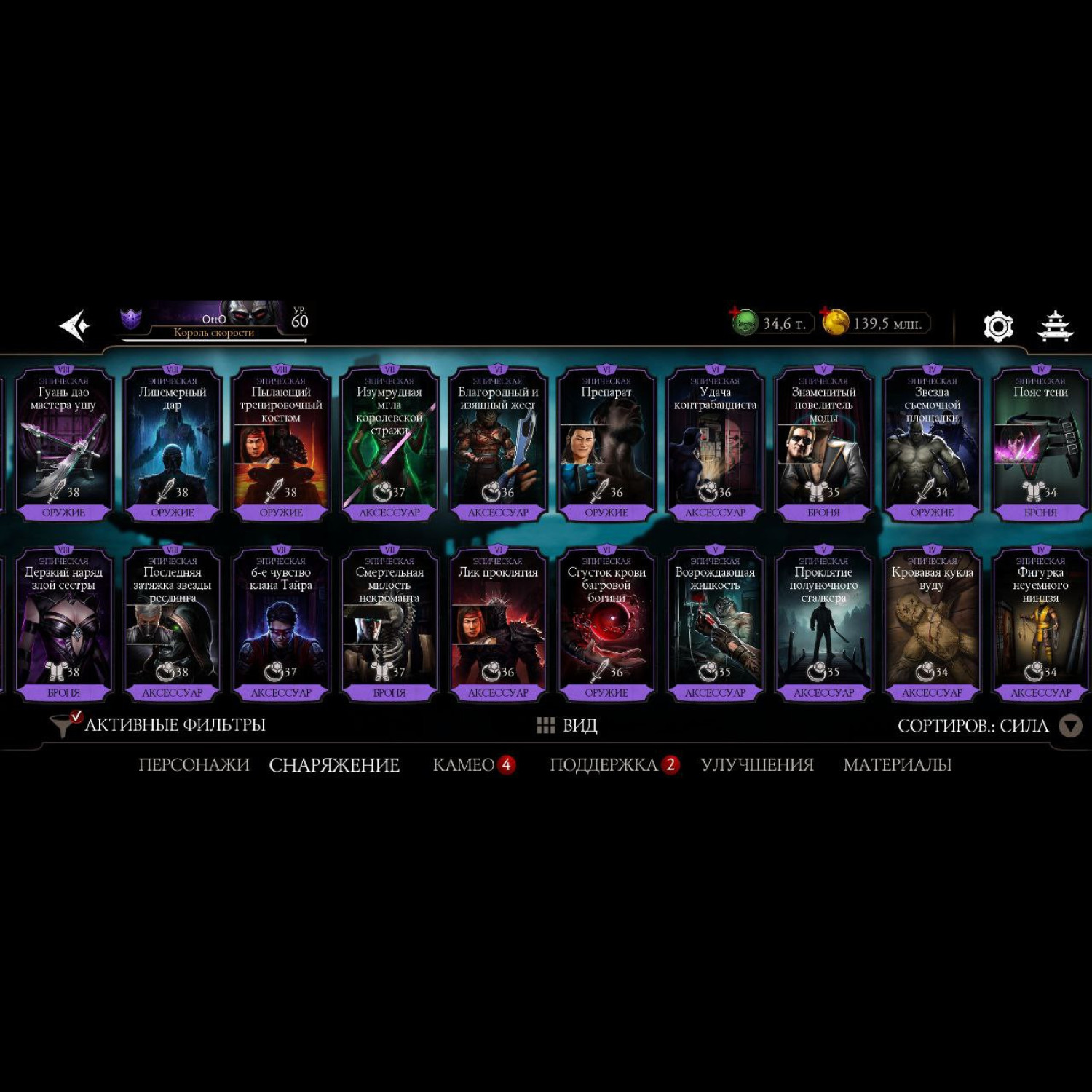 Очень прокаченный аккаунт от МК Мобайл, много эпик снаряги башни Х слияния, последних особенно, 30 алмазок на Х слиянии, соответственно остальные тоже хорошо вкачены, много на 9 слиянии, также 30к+ душ на акке есть. Бруталити/френдшип: Кабал, Кейси Кейдж, Рейдан, Кано, Милина, Кун лао, Лю Кан, Рейн, Джакс Бригс, Кенши, Куан чи, Джейд, Китана, Скарлет, Джейсон Вурхиз, Скопион, Саб зиро, Шан цунг, Рептилия, Синдел, Смоук, Башня Времени, Соня Блейд, Нуб сайбот, Ночной Волк, Джонни кейдж, Эррон Блэк