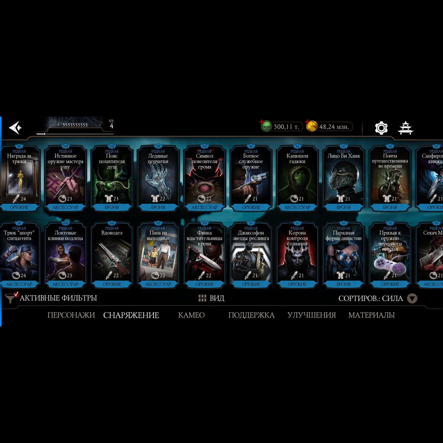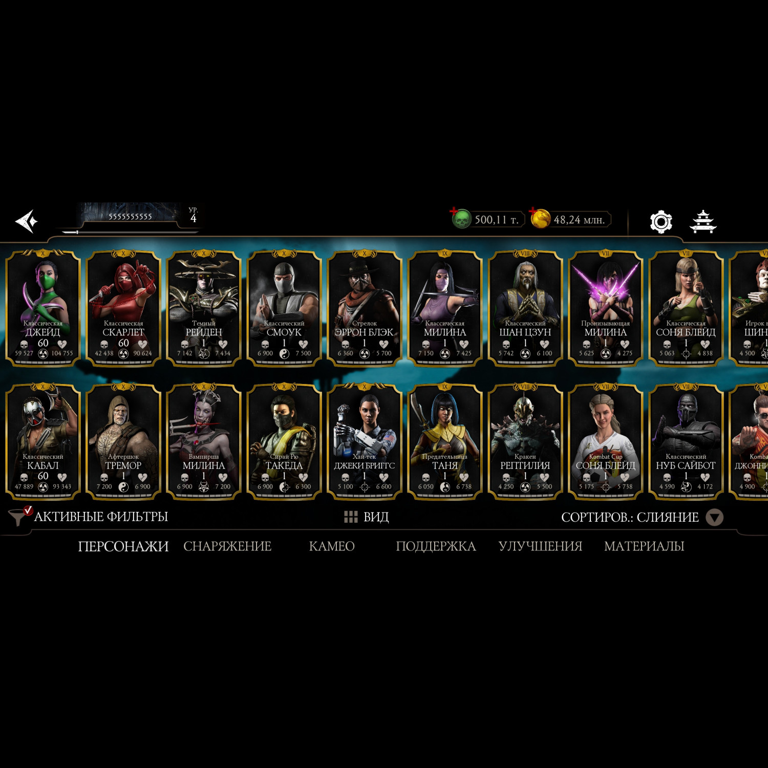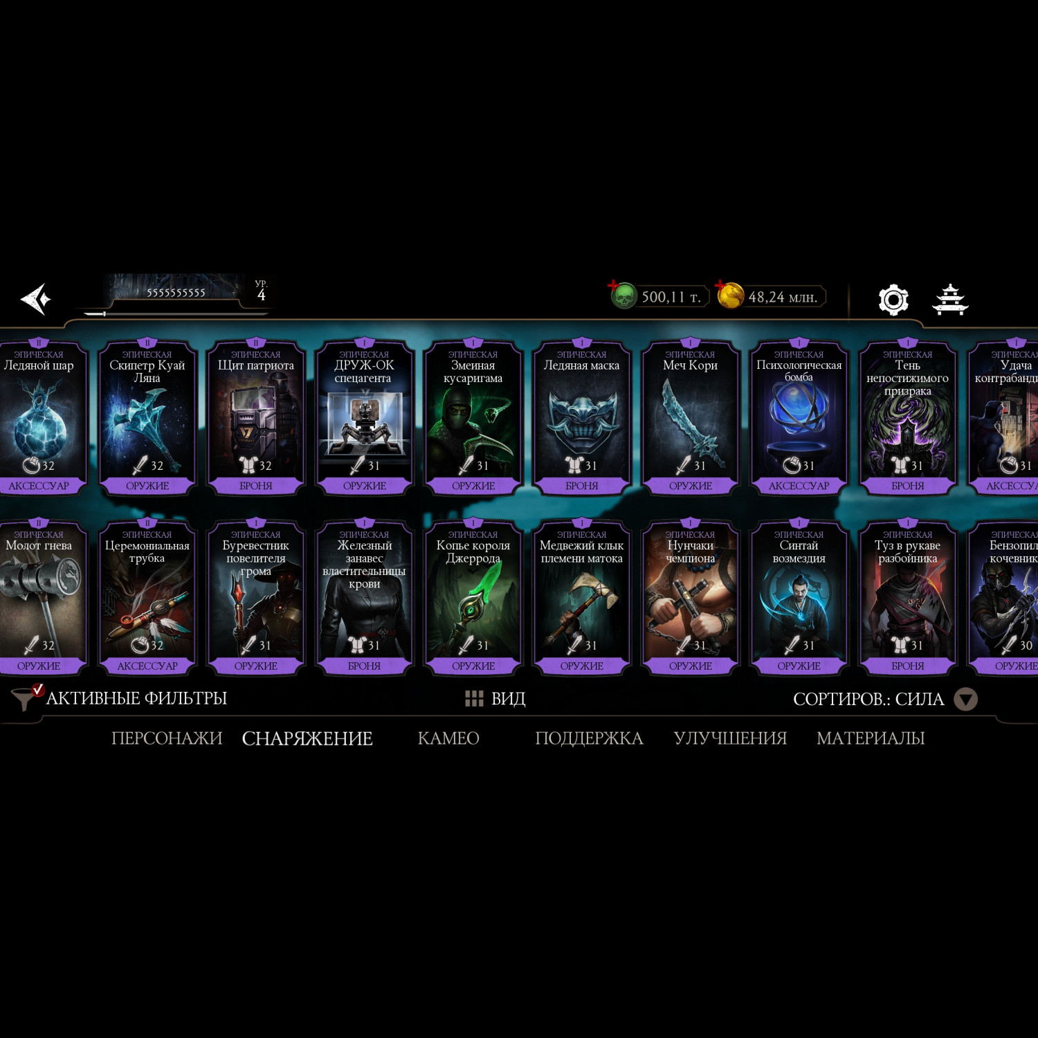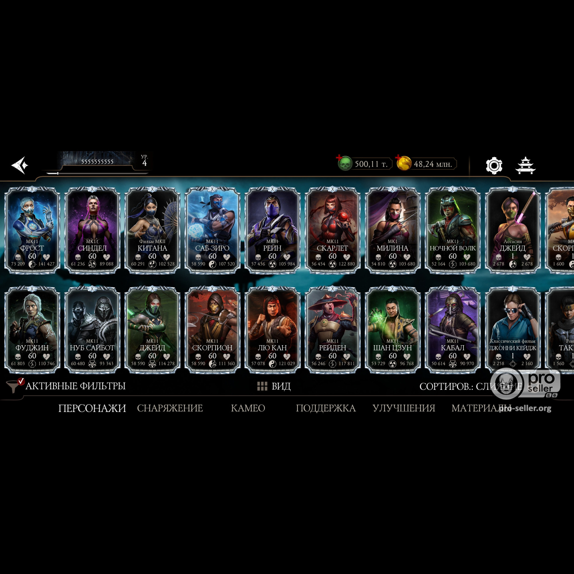Фрост Х, мк11 х, Китана и Милина Х, 500 000 душ, 64 разных эпика, много синьки, зеленка башен на Х