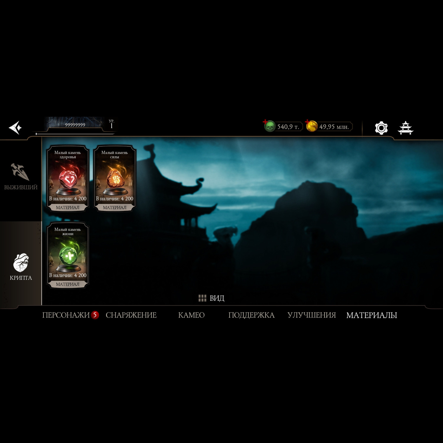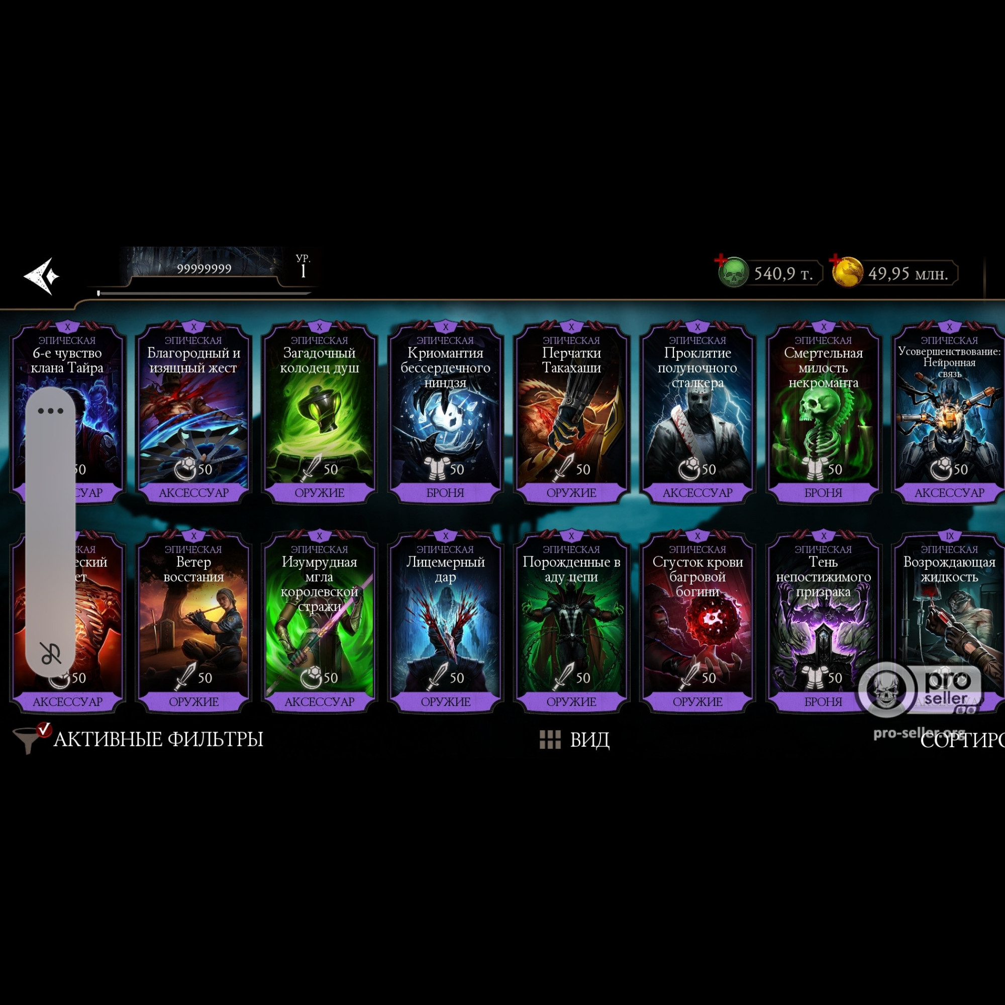 Фрост Х, все мк11 Х, Китана Х, Милина Х, 540 000 душ, снаряга Крипты Х, много материалов крипты