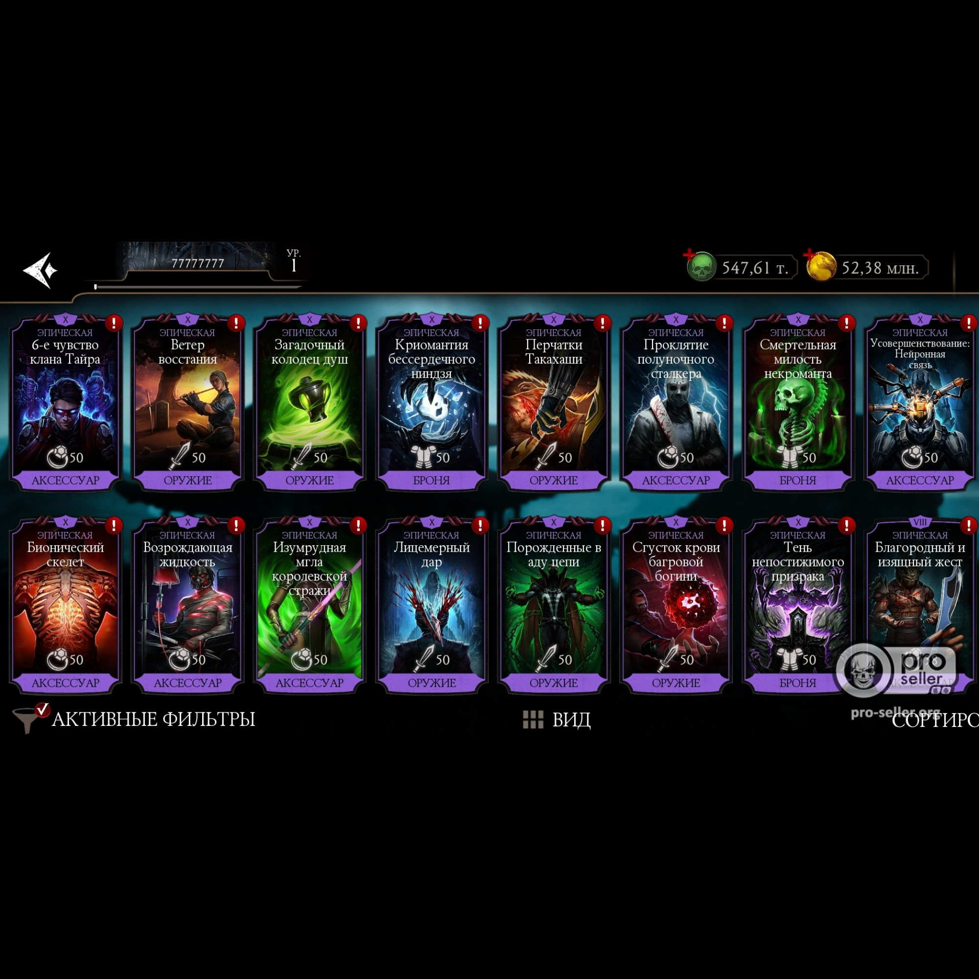 Фрост Х, мк11 х, Китана и Милина на х, 550 000 душ, 15 эпиков крипты х, синька крипты х, много материалов крипты.