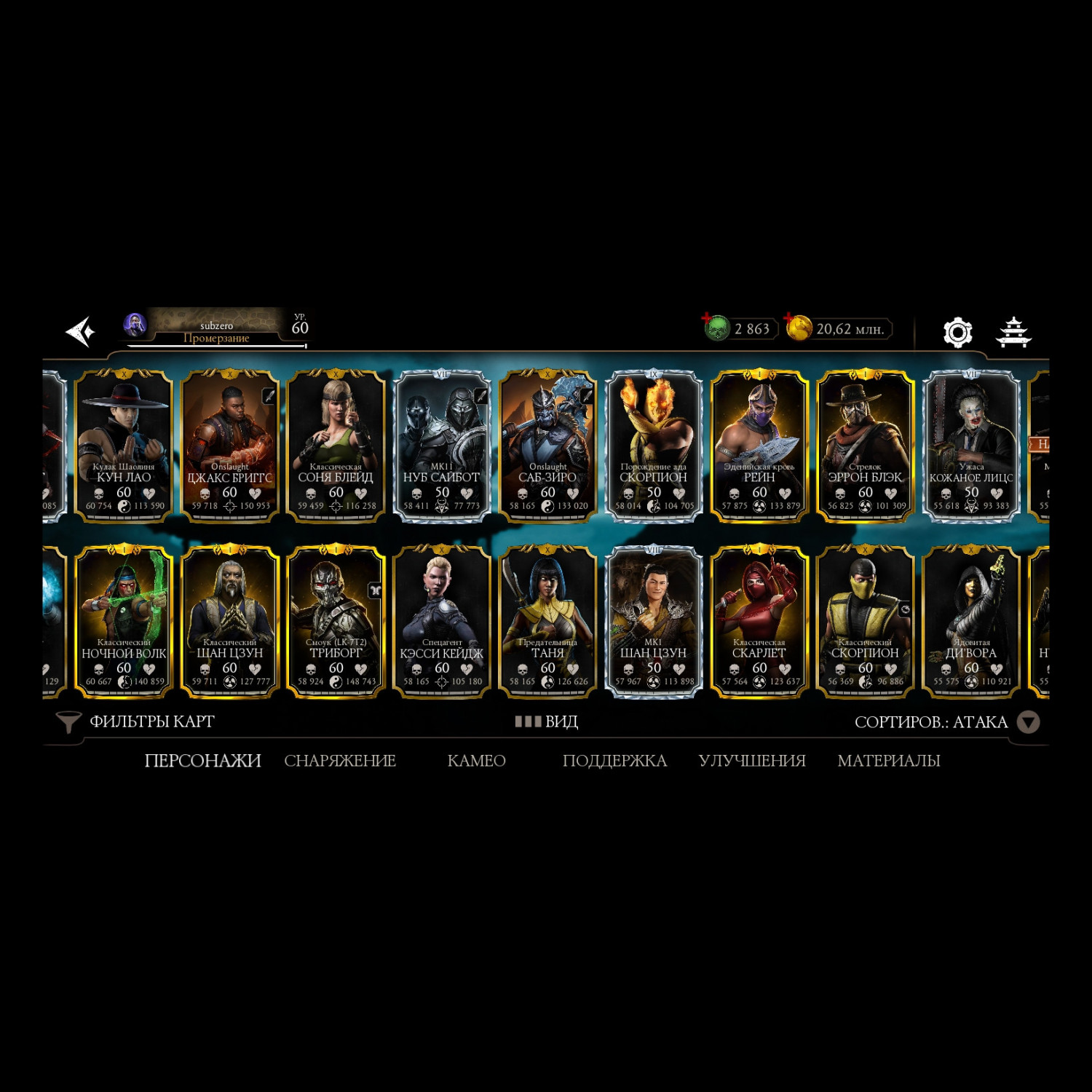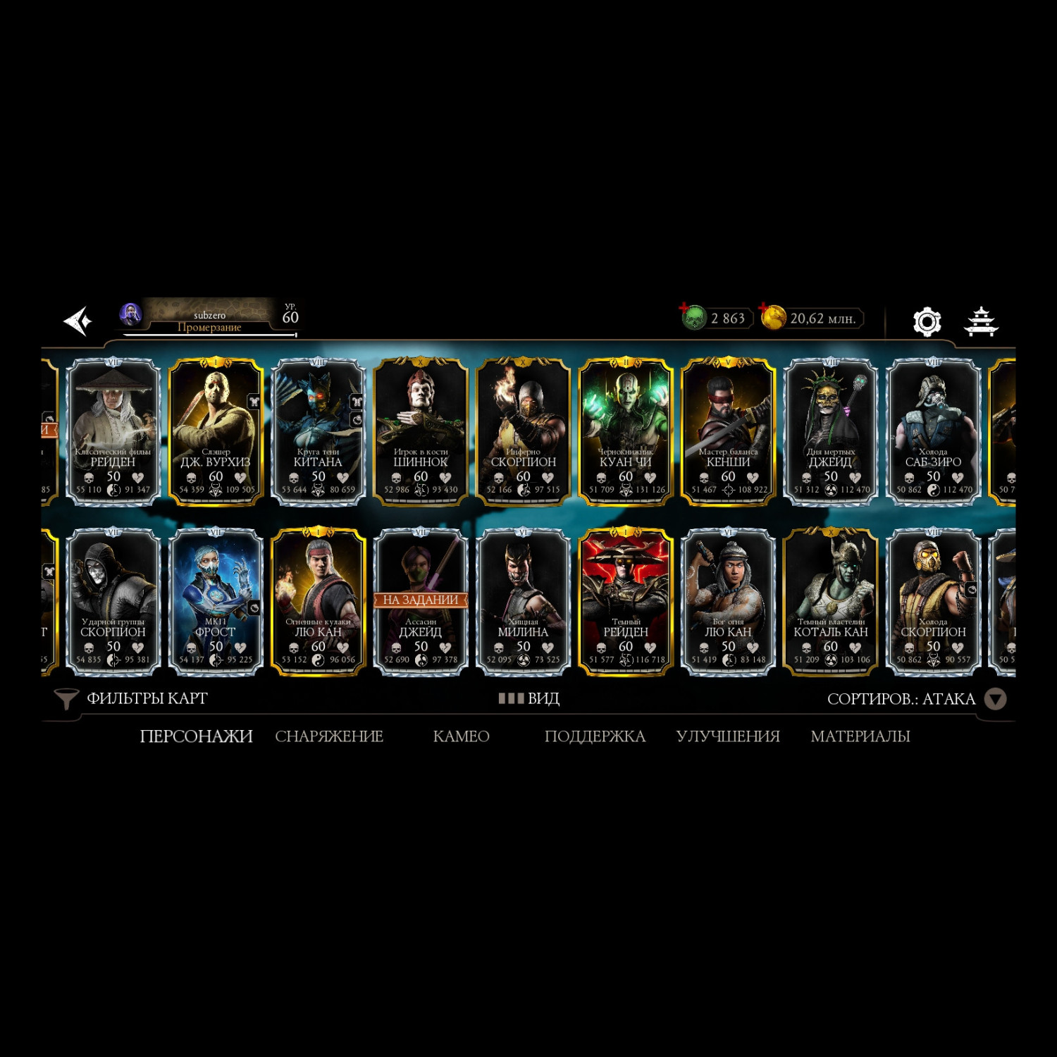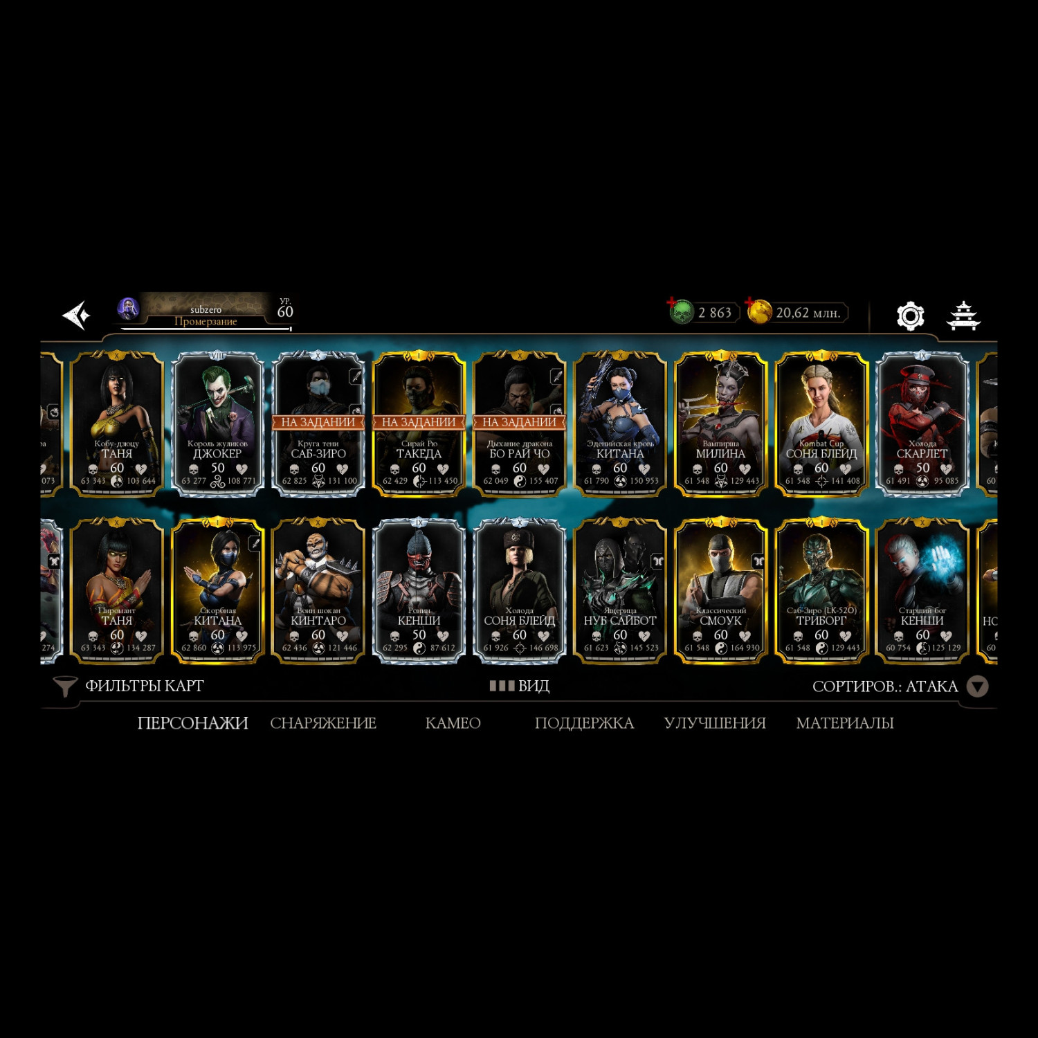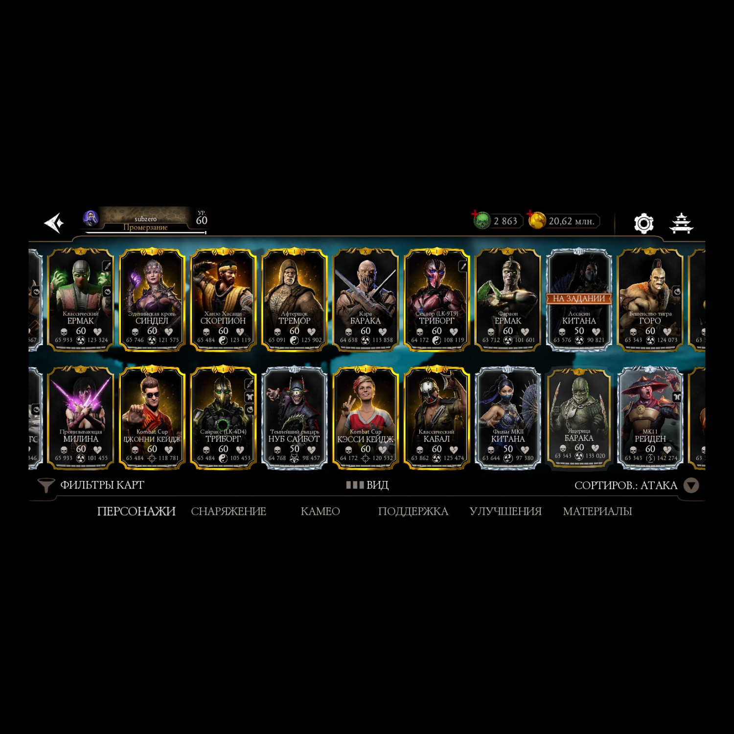 Отличный аккаунт для ценителей МК мобайл! Есть все персы включая Фрост МК 11 ! Отличный выбор снаряг и камео !