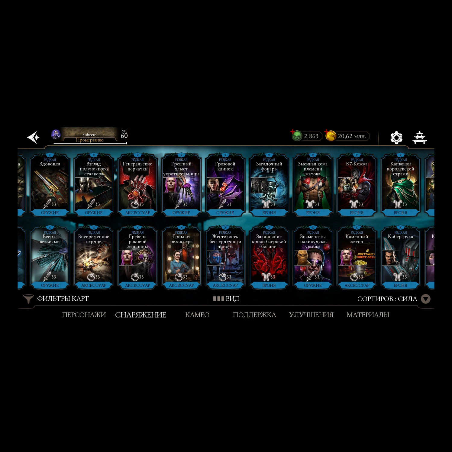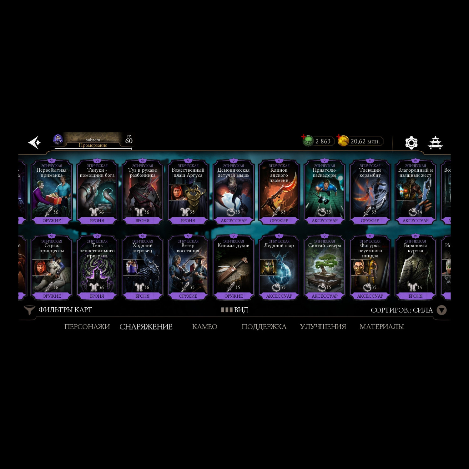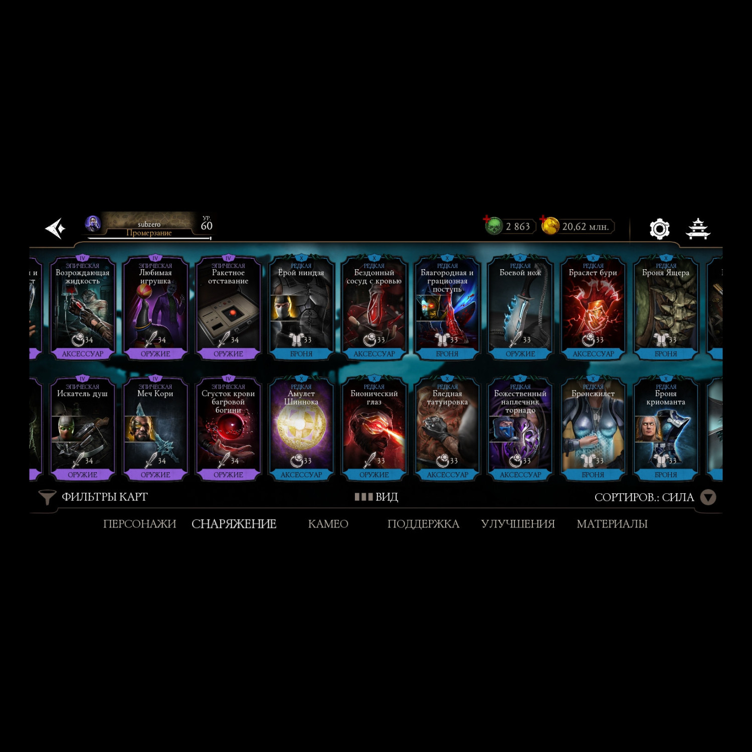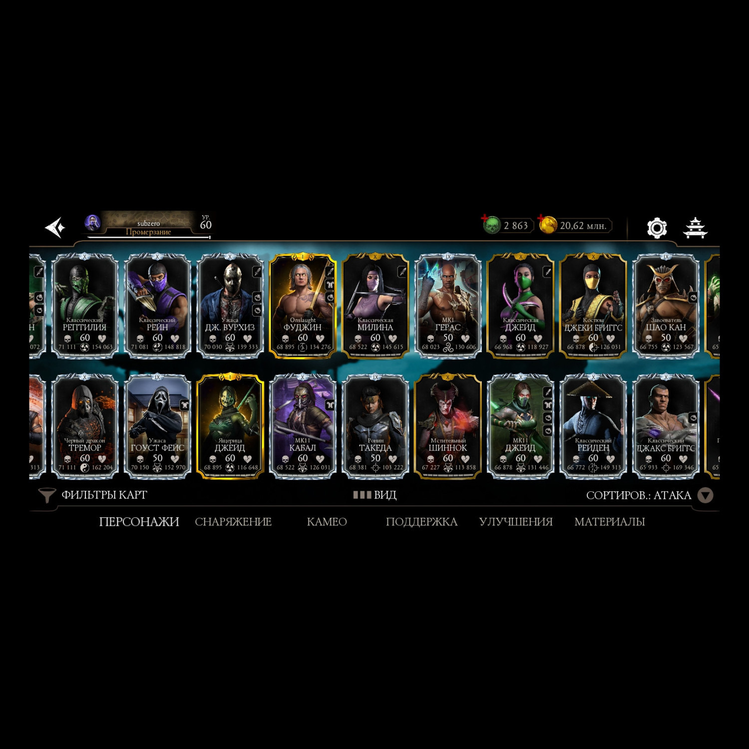 Отличный аккаунт для ценителей МК мобайл! Есть все персы включая Фрост МК 11 ! Отличный выбор снаряг и камео !