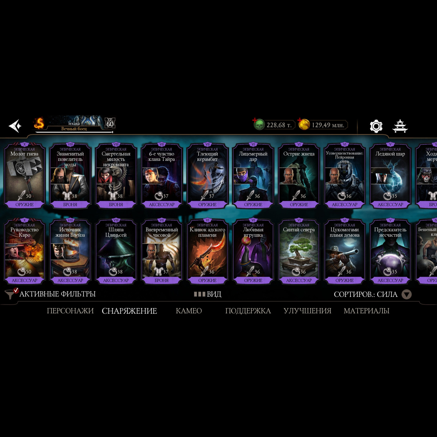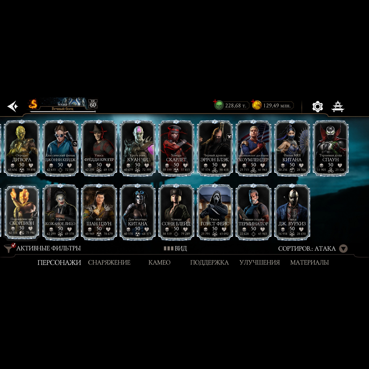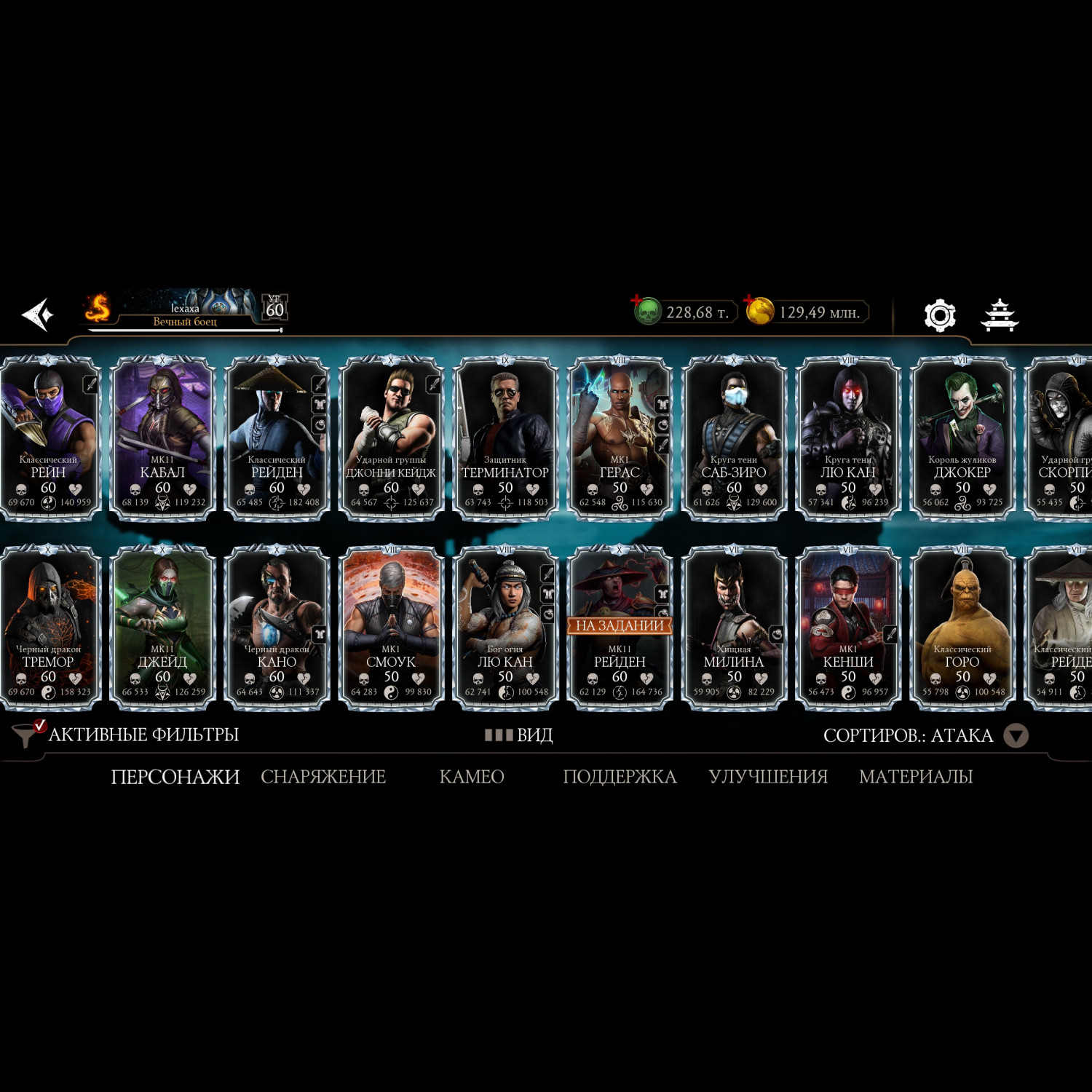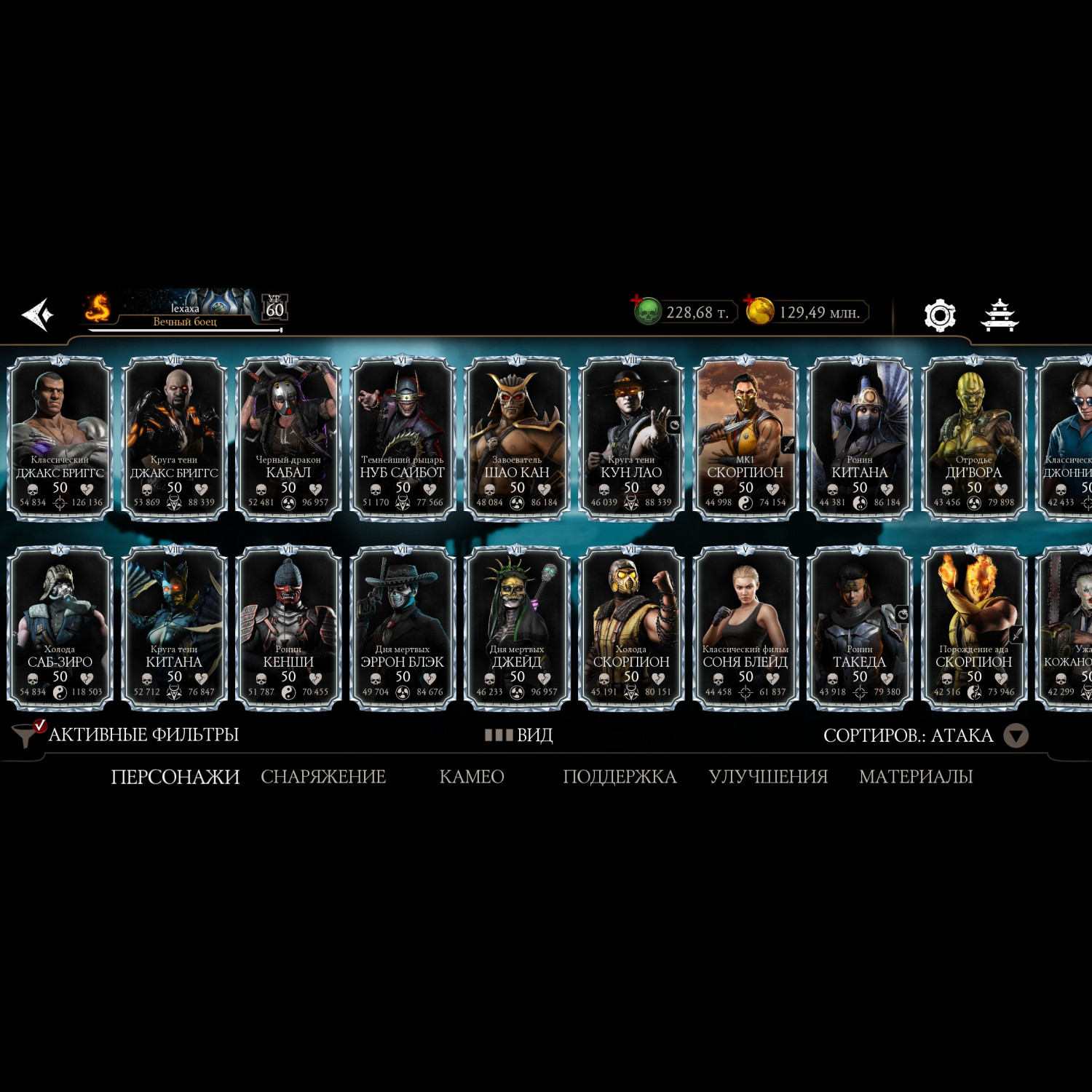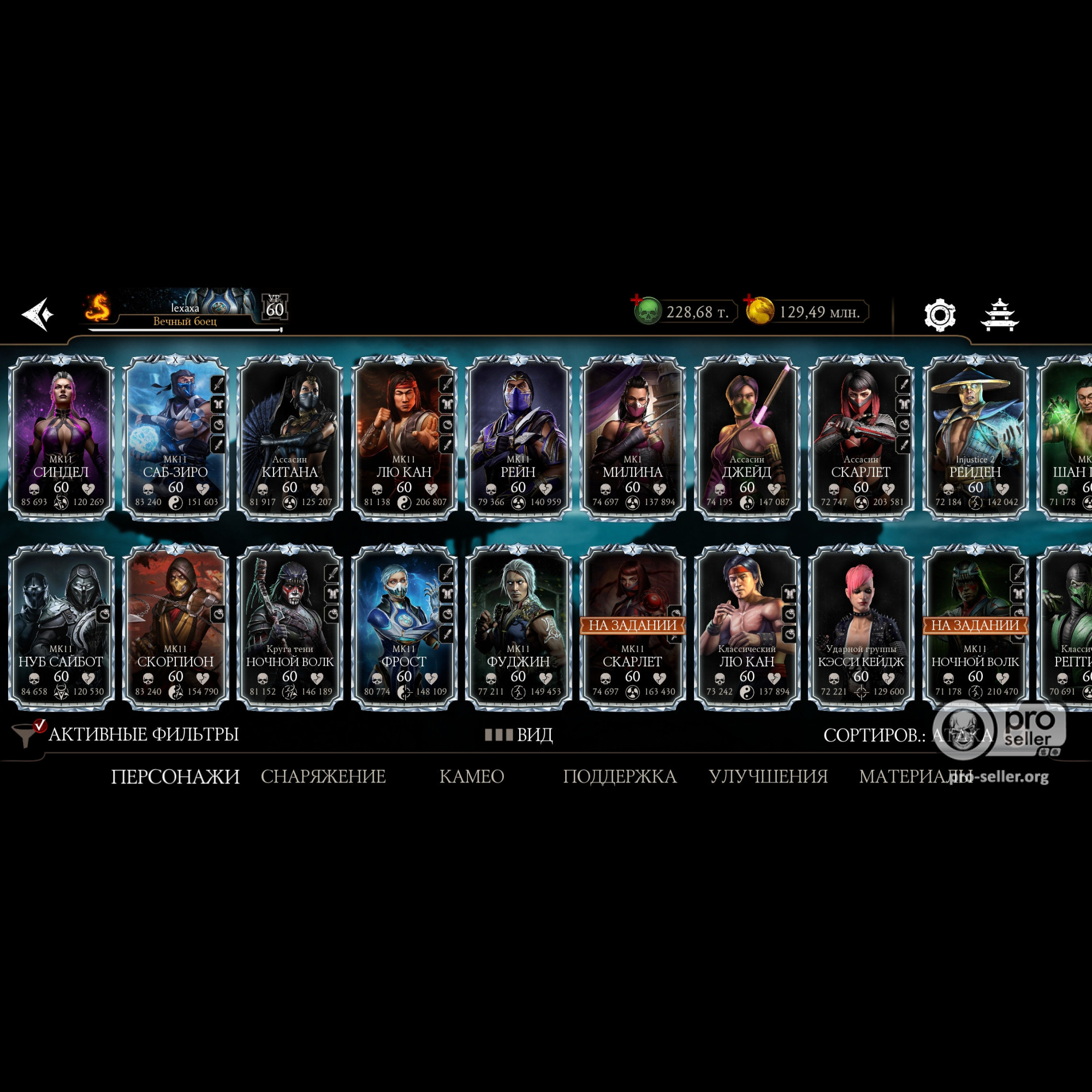 Есть все алмазные персонажи, 29 из них на Х, все золото на Х, кроме 2х, много эпиков, синьки на х большая часть, 200.000 душ, аккаунт постоянно прокачивается, играю каждый день.
