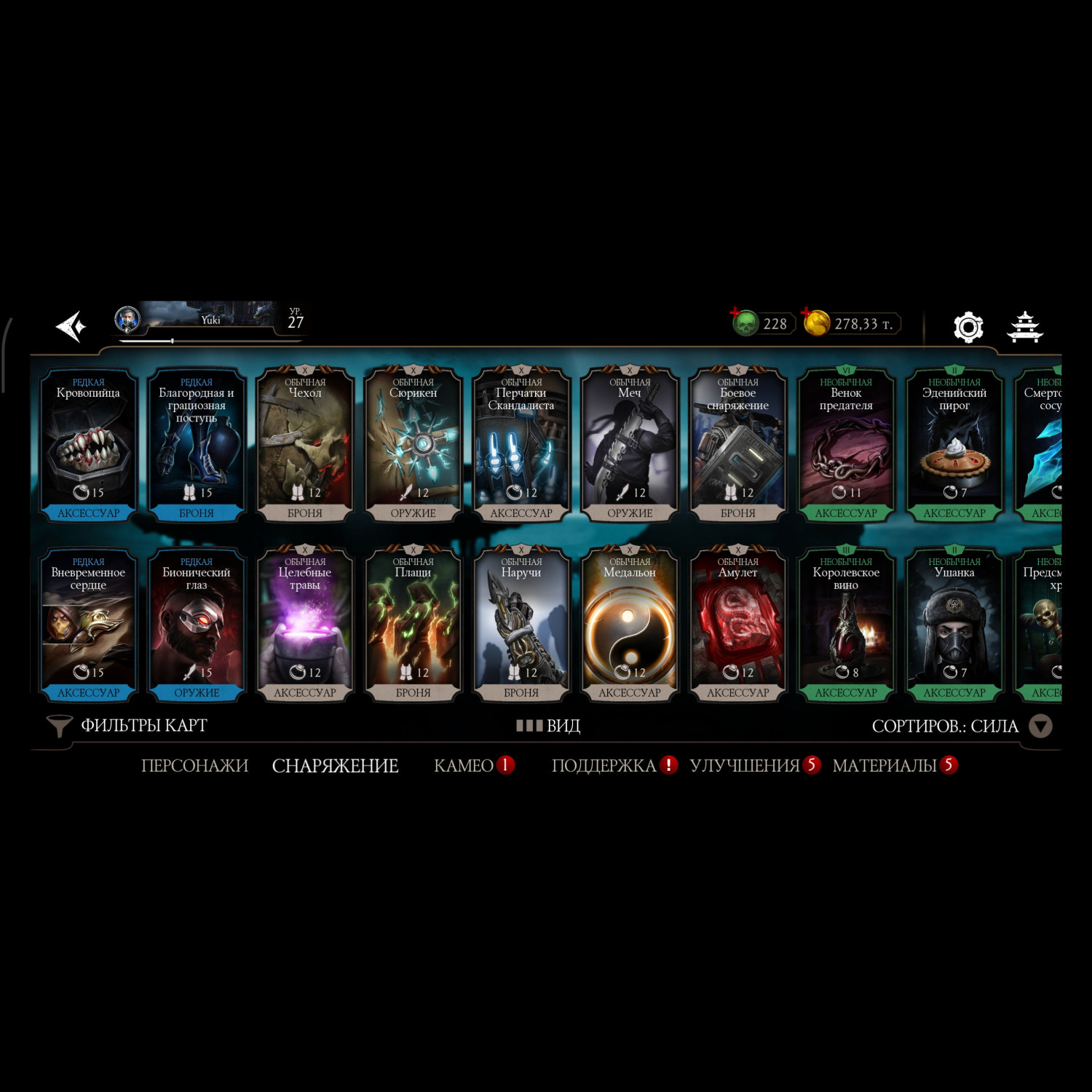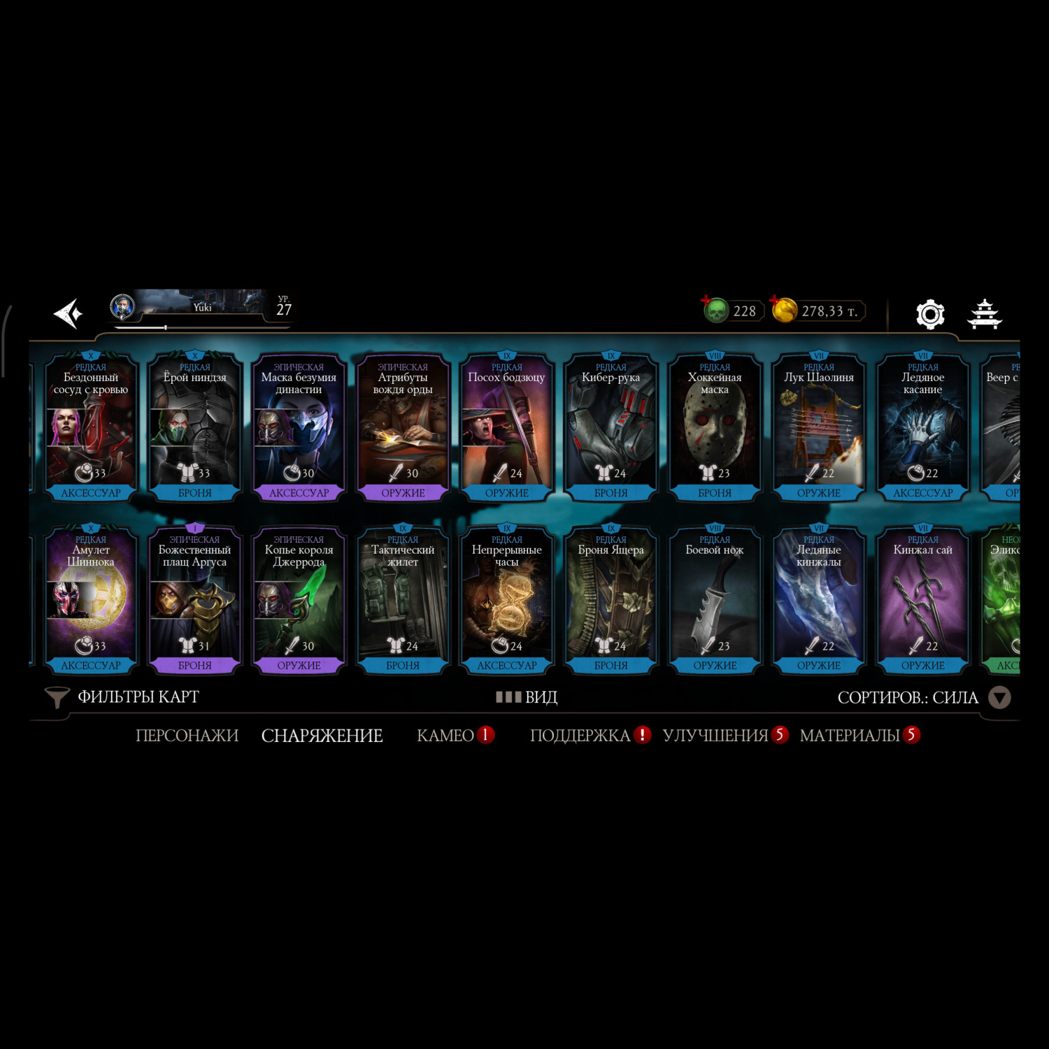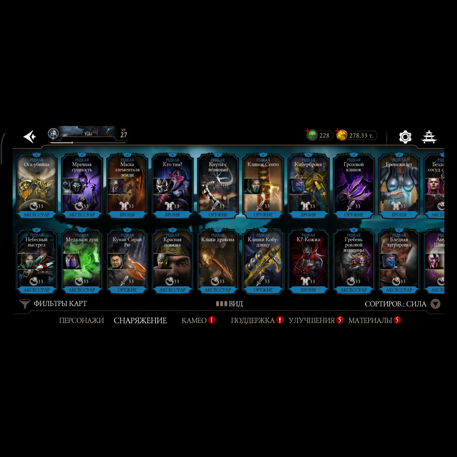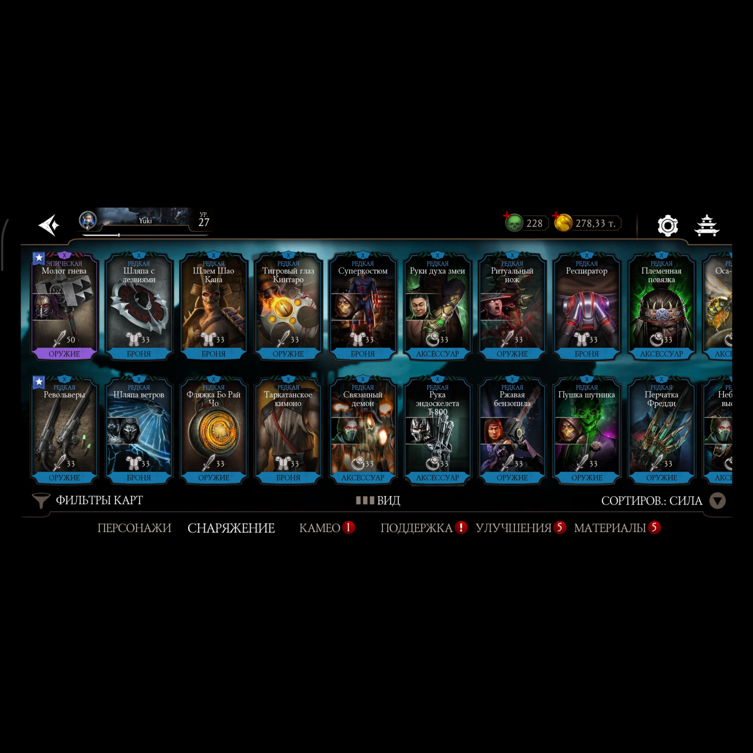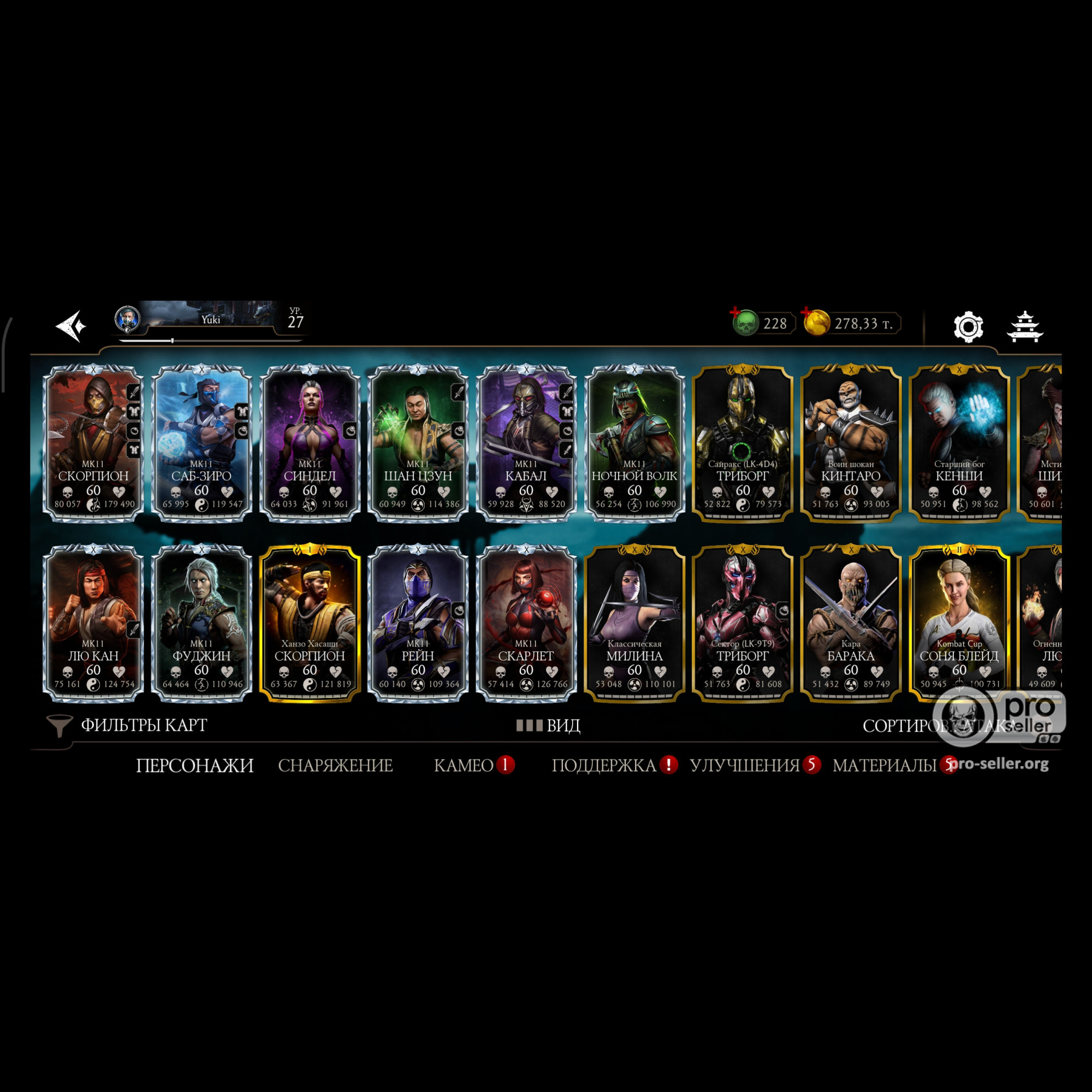 Аккаунт достаточно прокачен, 11 алмазных карт 10 слияния много редкого снаряжения прокаченого на X слияние много золотых карт 10 слияния, есть новые персонажи ФРОСТ мк11 Кенши мк1 Смоук мк1, 3 снярежения эденийской башни