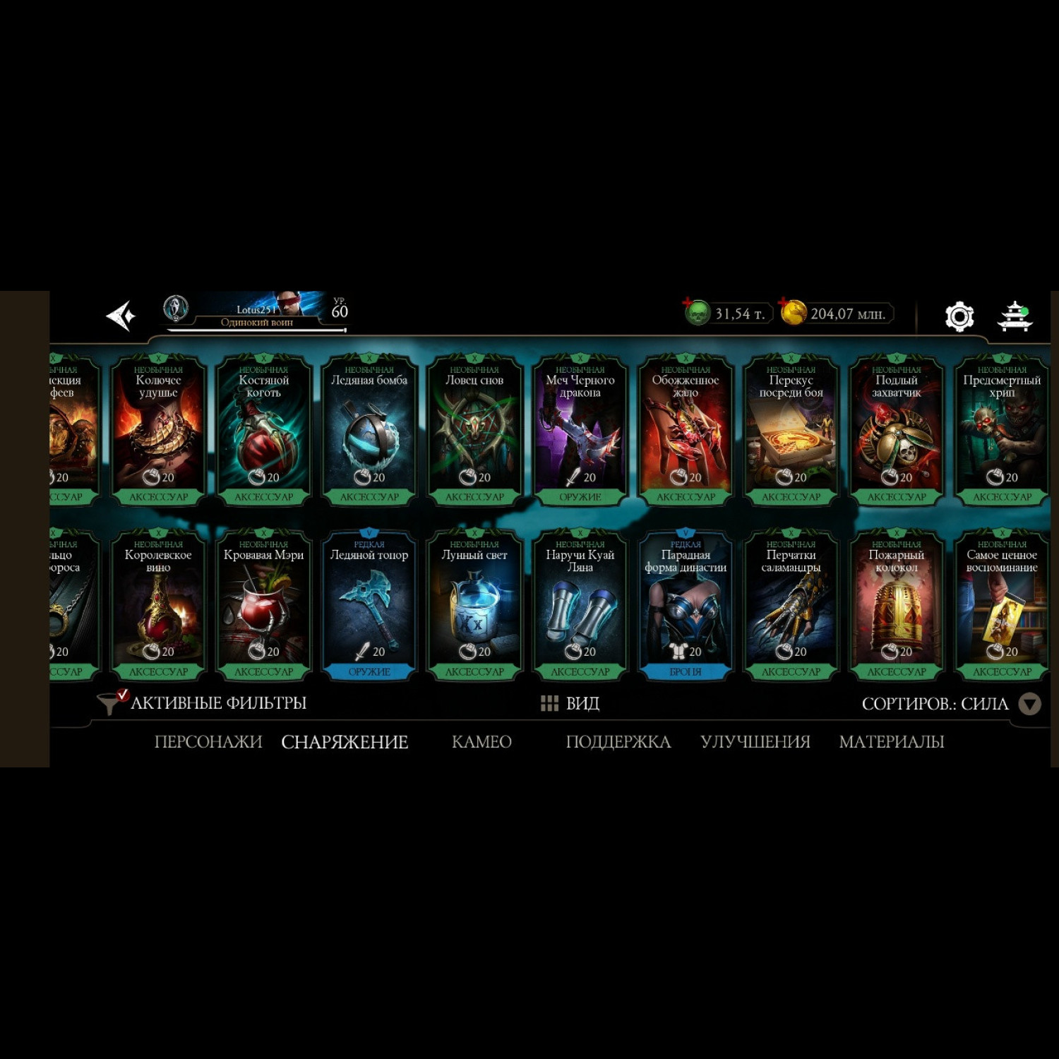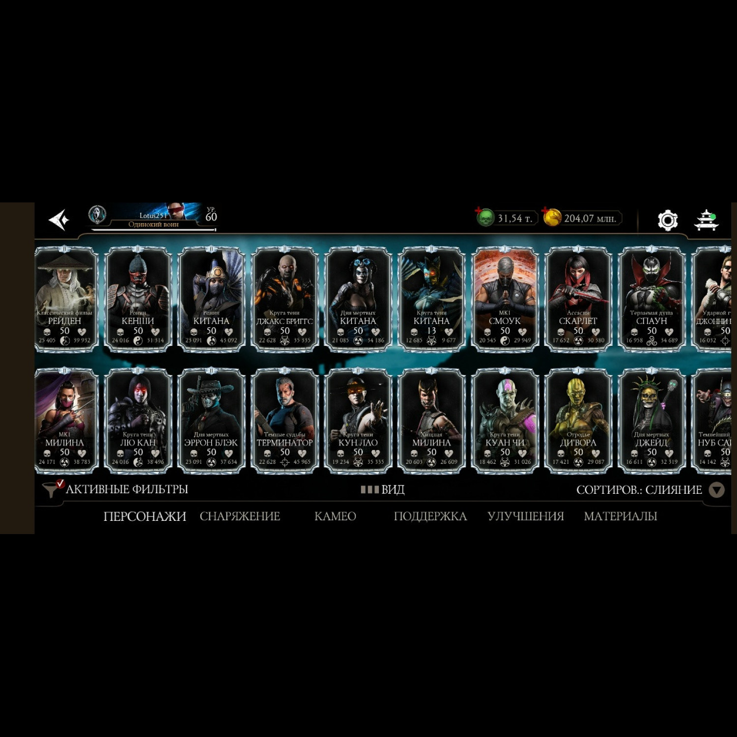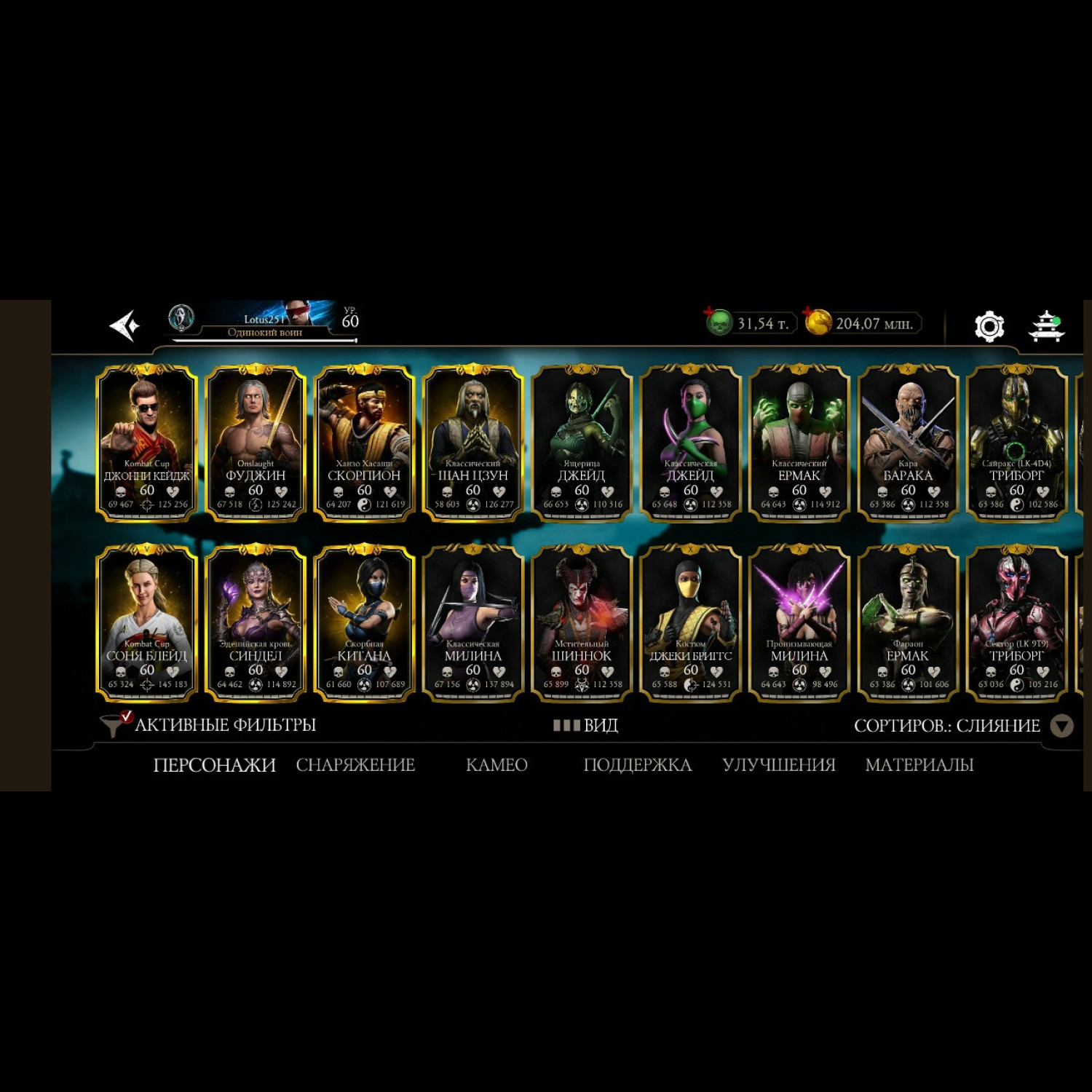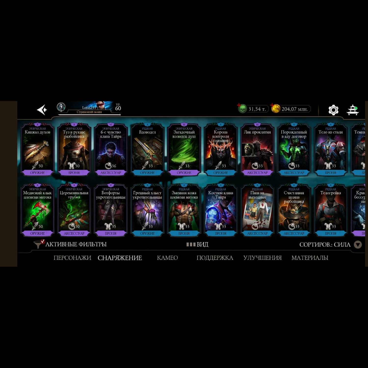 Есть почти все золотые из игры, не хватает всего 2 карты, из золотых все кто есть - все они Х слияния. Есть вся редкая именная снаряга и снаряга из башен, процентов 85-90 имеется, есть много бруталок и фрэндшипов, а так же 31,5 к душ для дальнейшей активной игры)