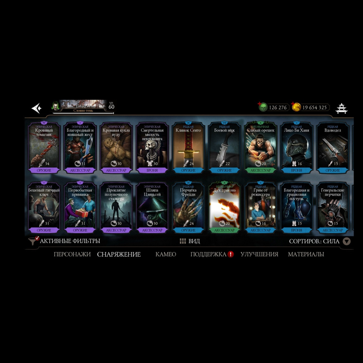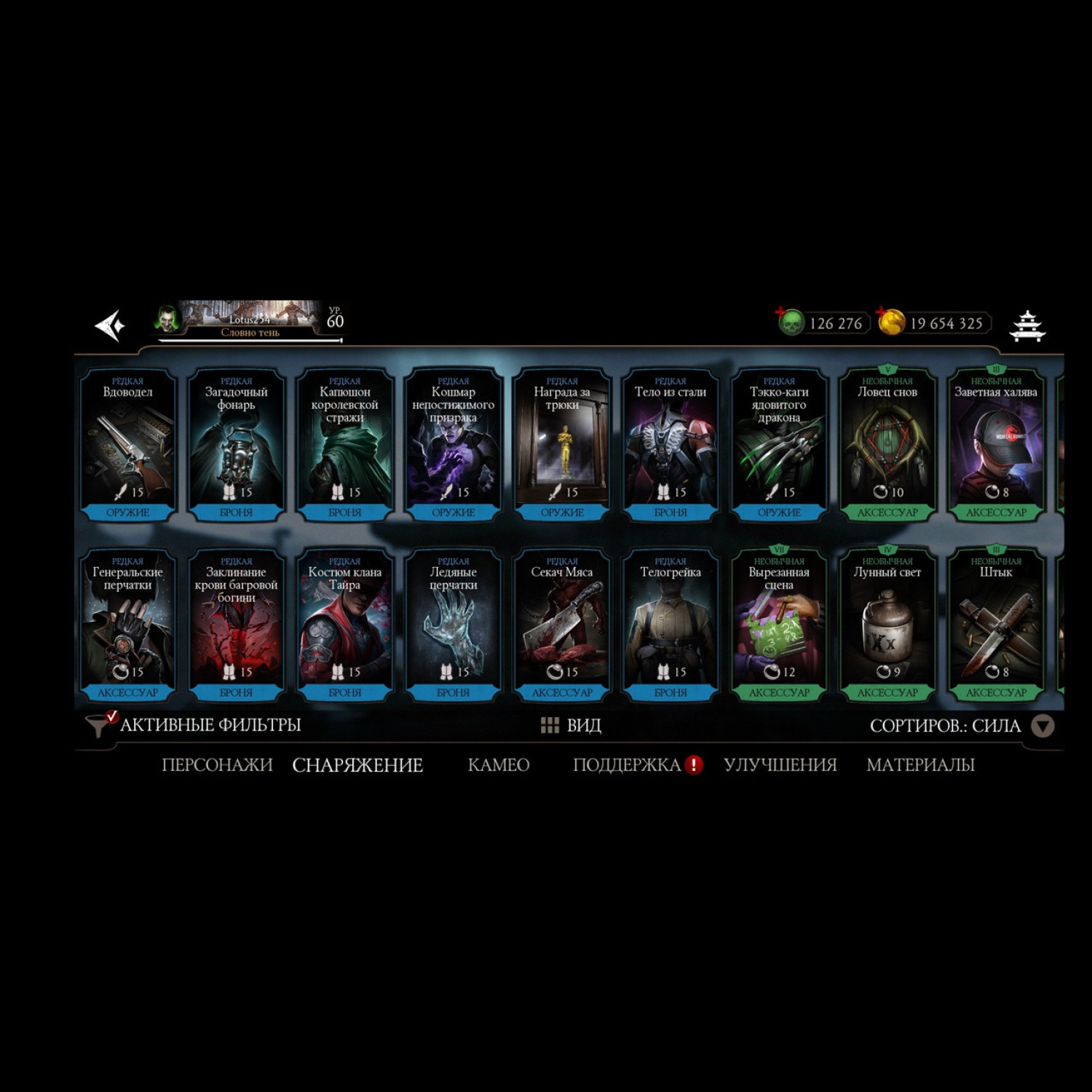 Есть почти все золотые из игры, не хватает всего 2 карты, из золотых большинство карт Х слияния. Есть вся редкая именная снаряга и снаряга из башен а так же 2 066 карт уровней и 126 к душ.