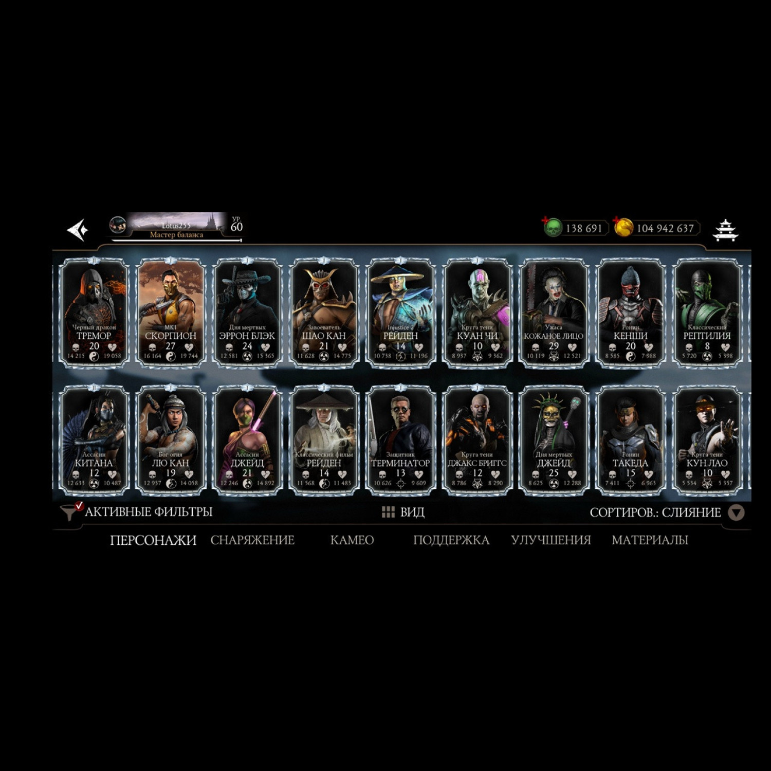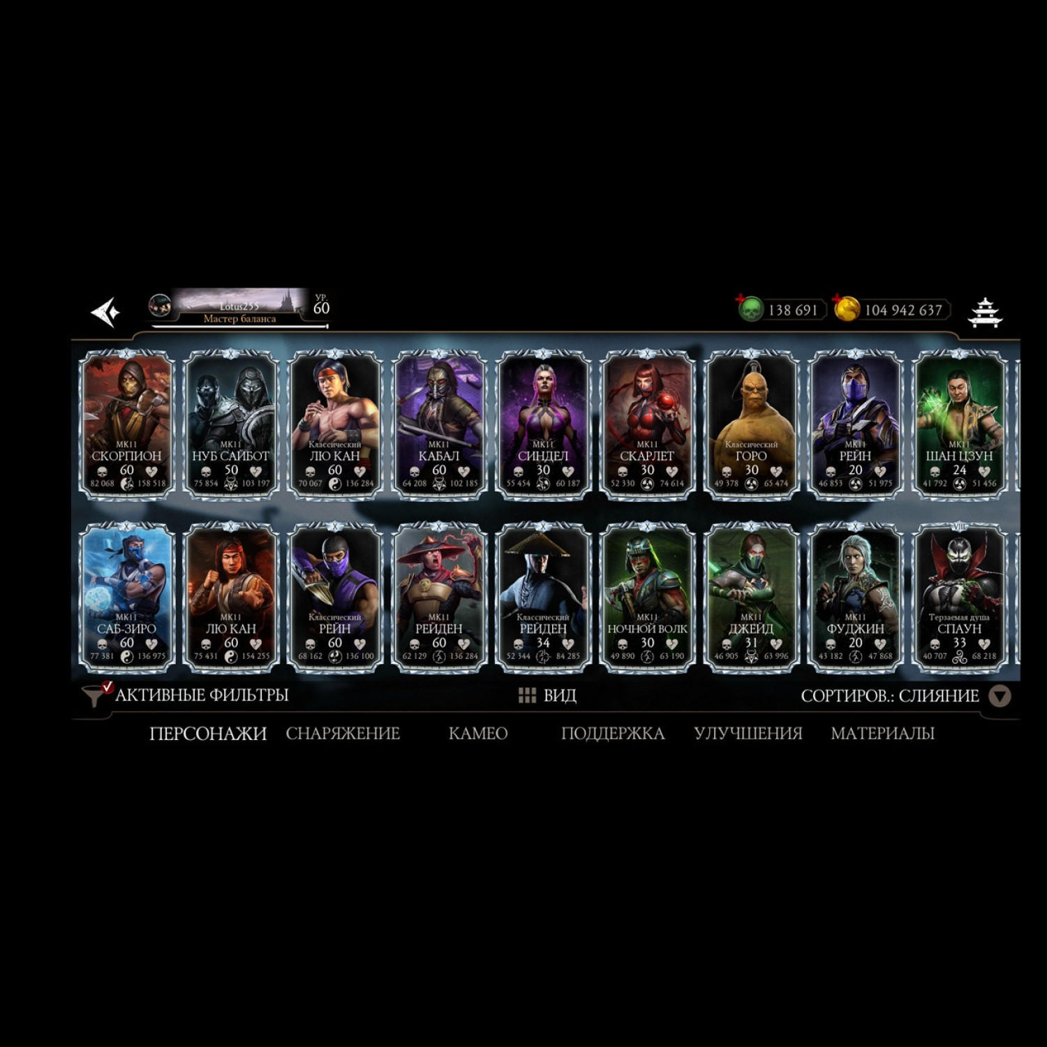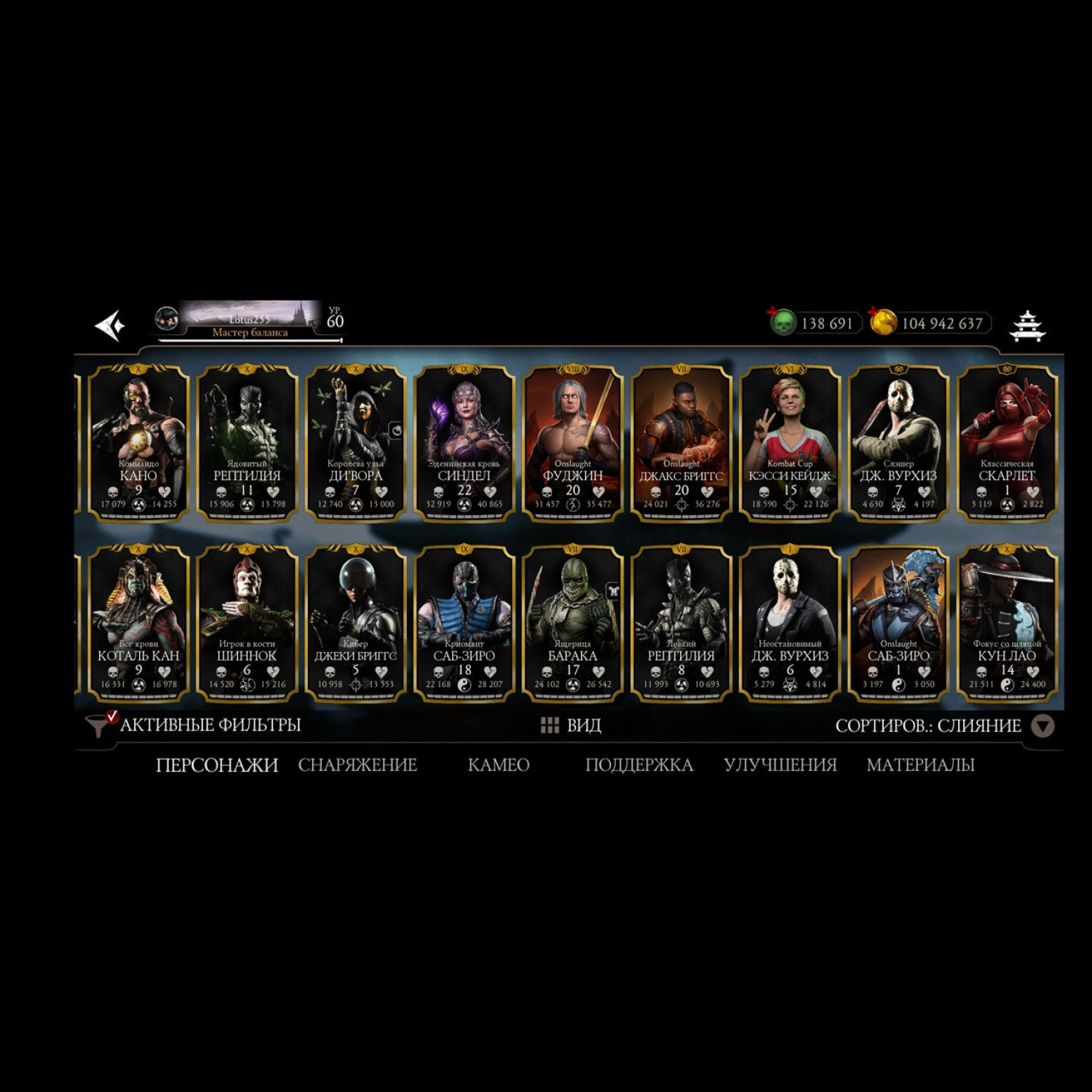 Есть абсолютно все золотые из игры, из золотых большинство карт Х слияния. Есть вся редкая именная снаряга и немного снаряги из башен а так же 138 к душ.