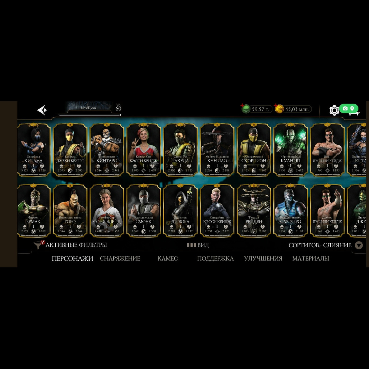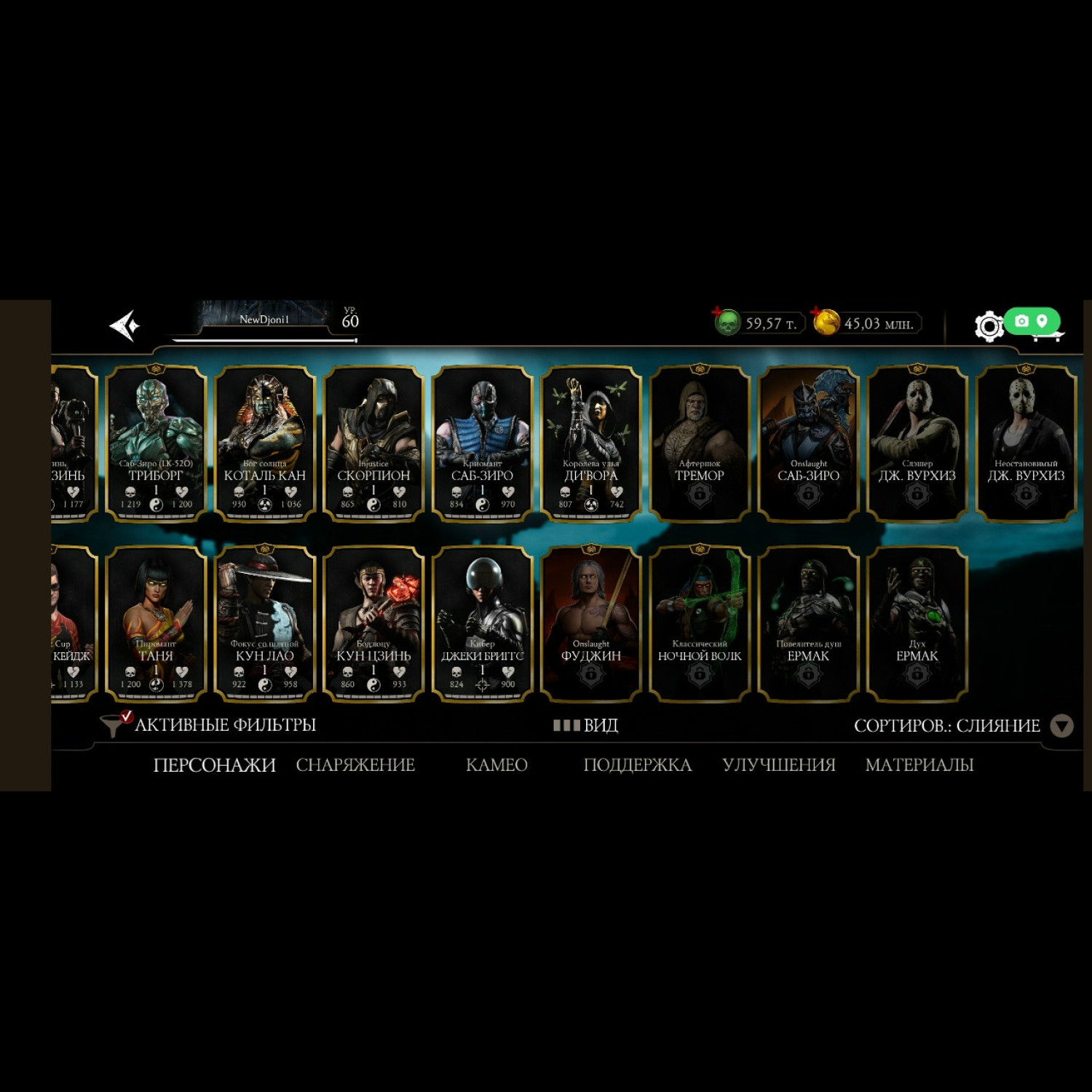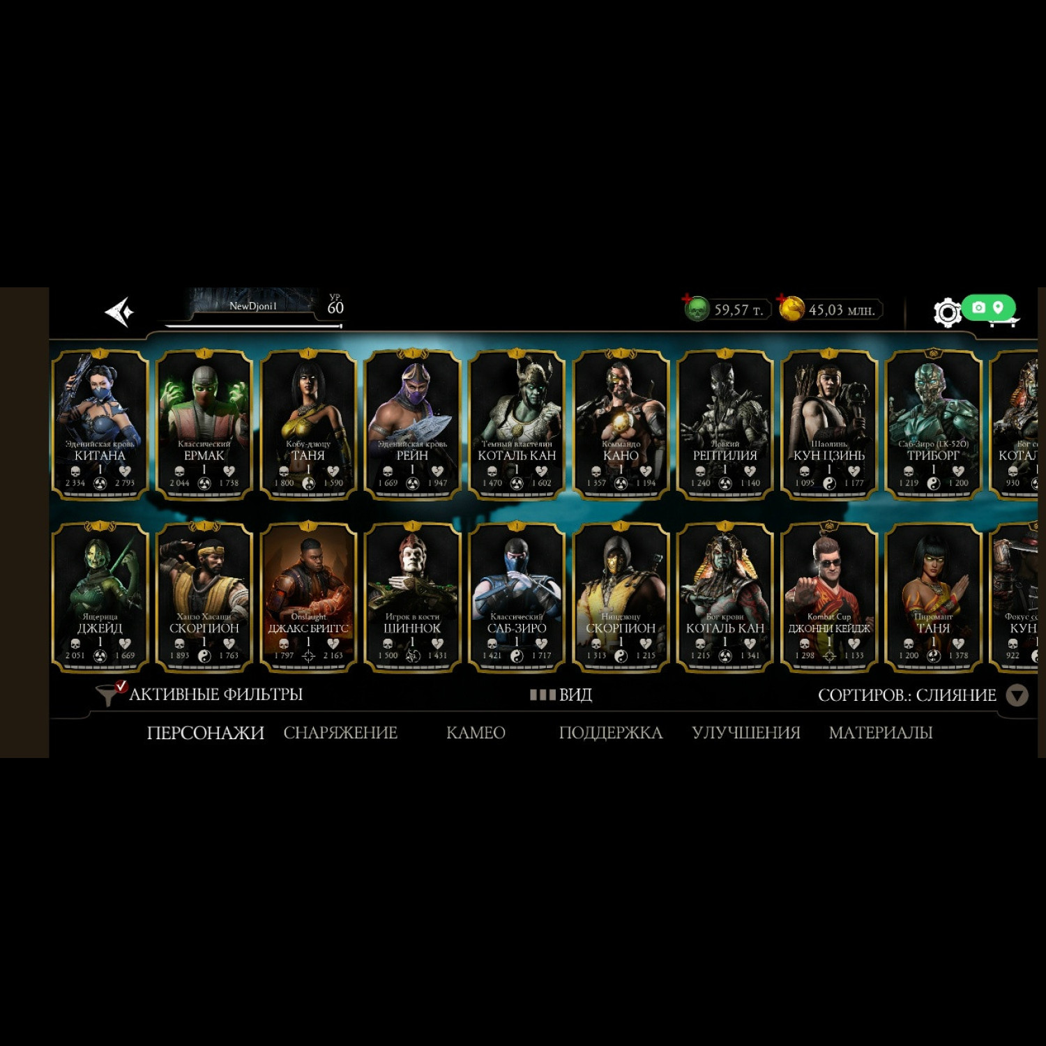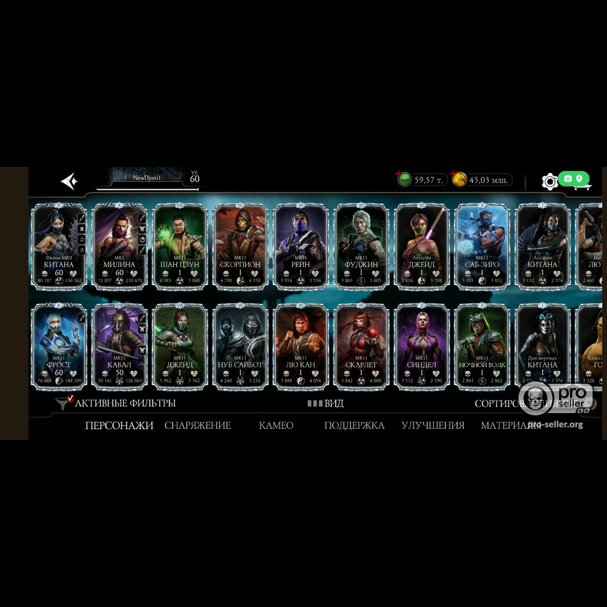 На аккаунте имеется Новая Фрост МК11, а так же Китана МК11 и Милина МК1 сразу Фул Х слияния! + Все остальные Алмазки из МК11 от 2 до 8 слияния. А вообще имеются 35 алмазок на аккаунте.