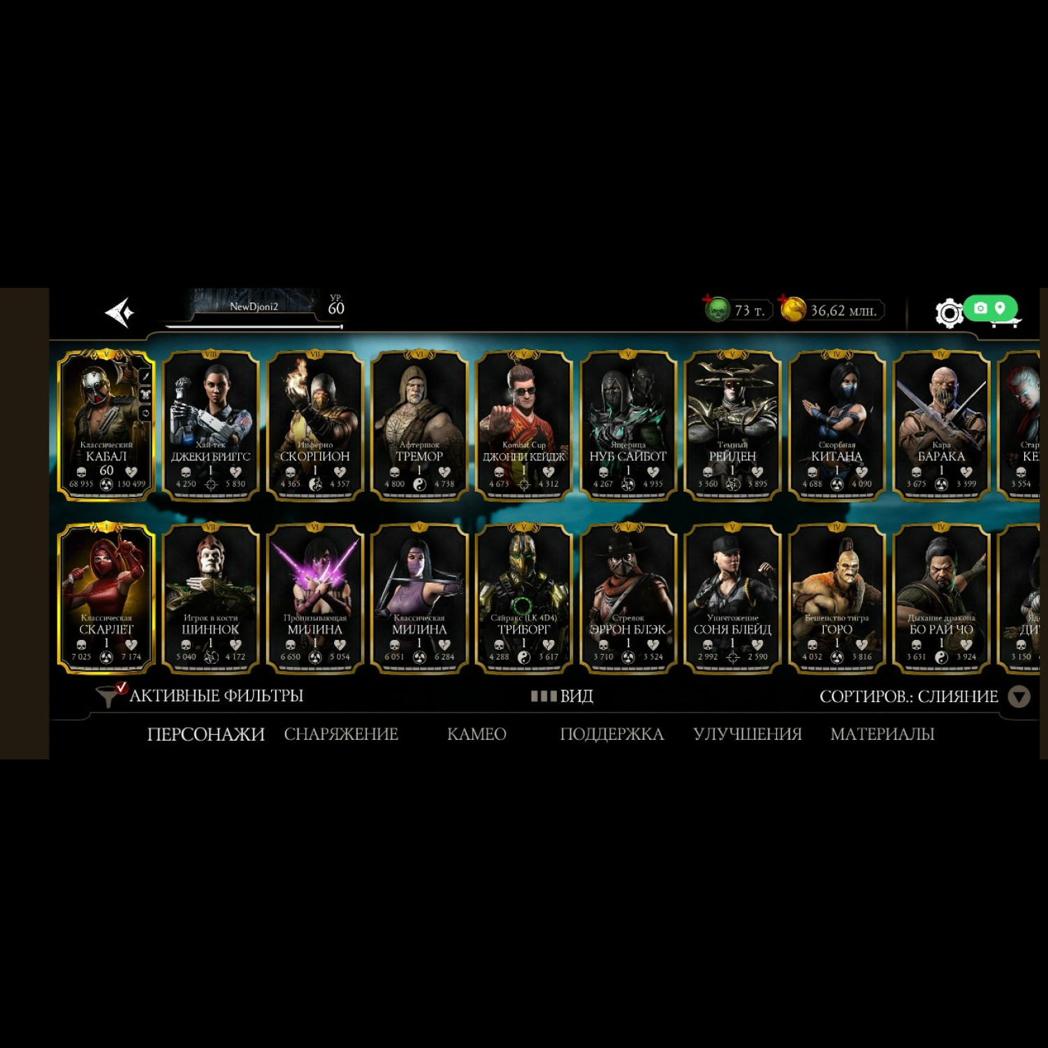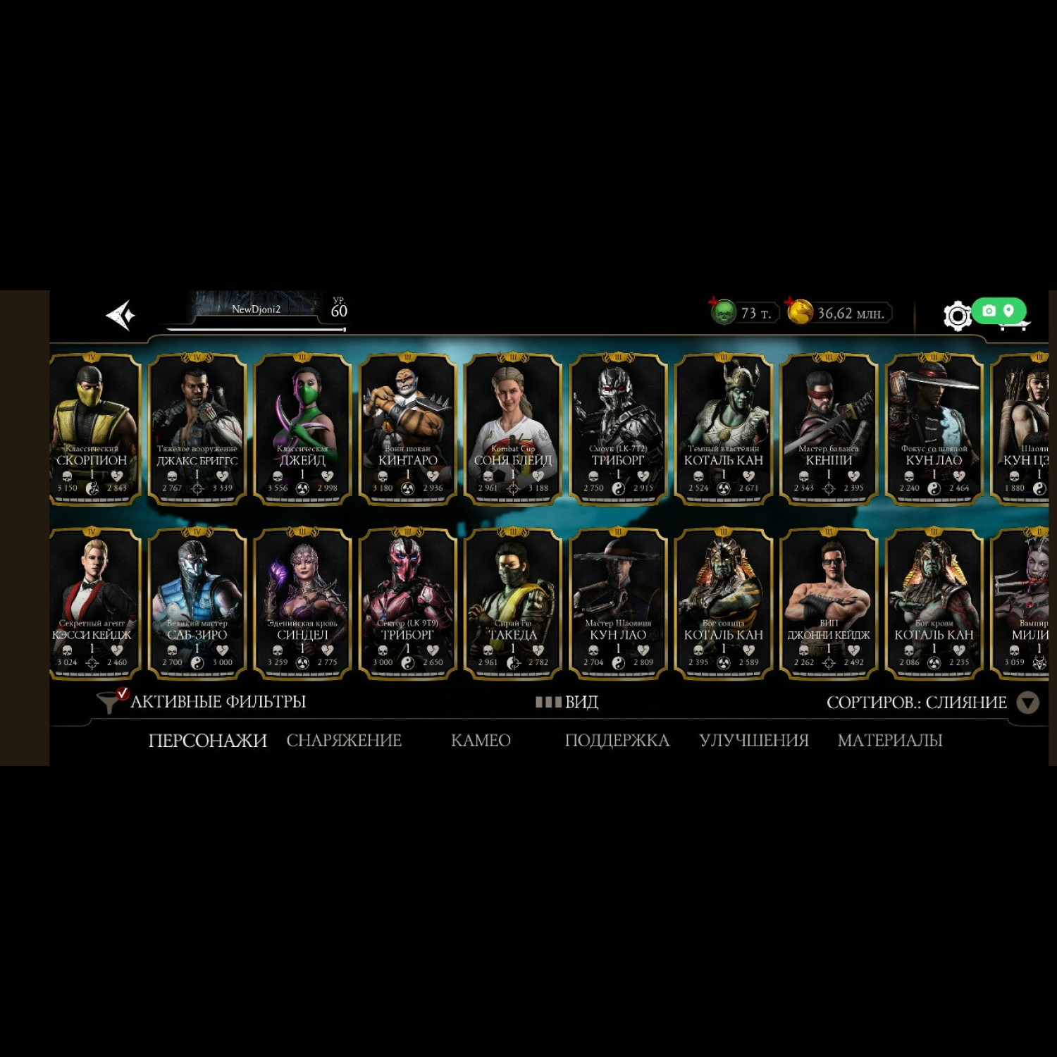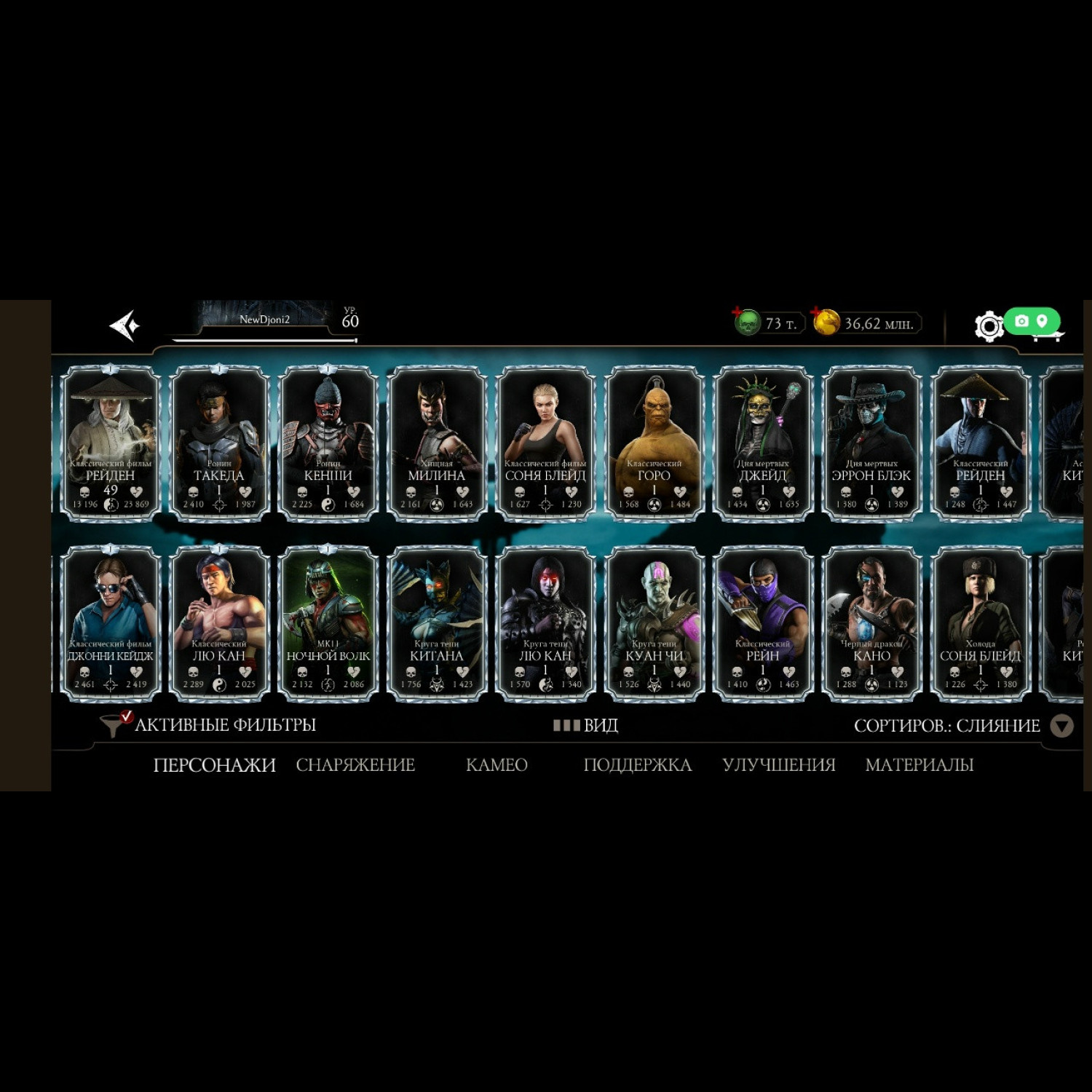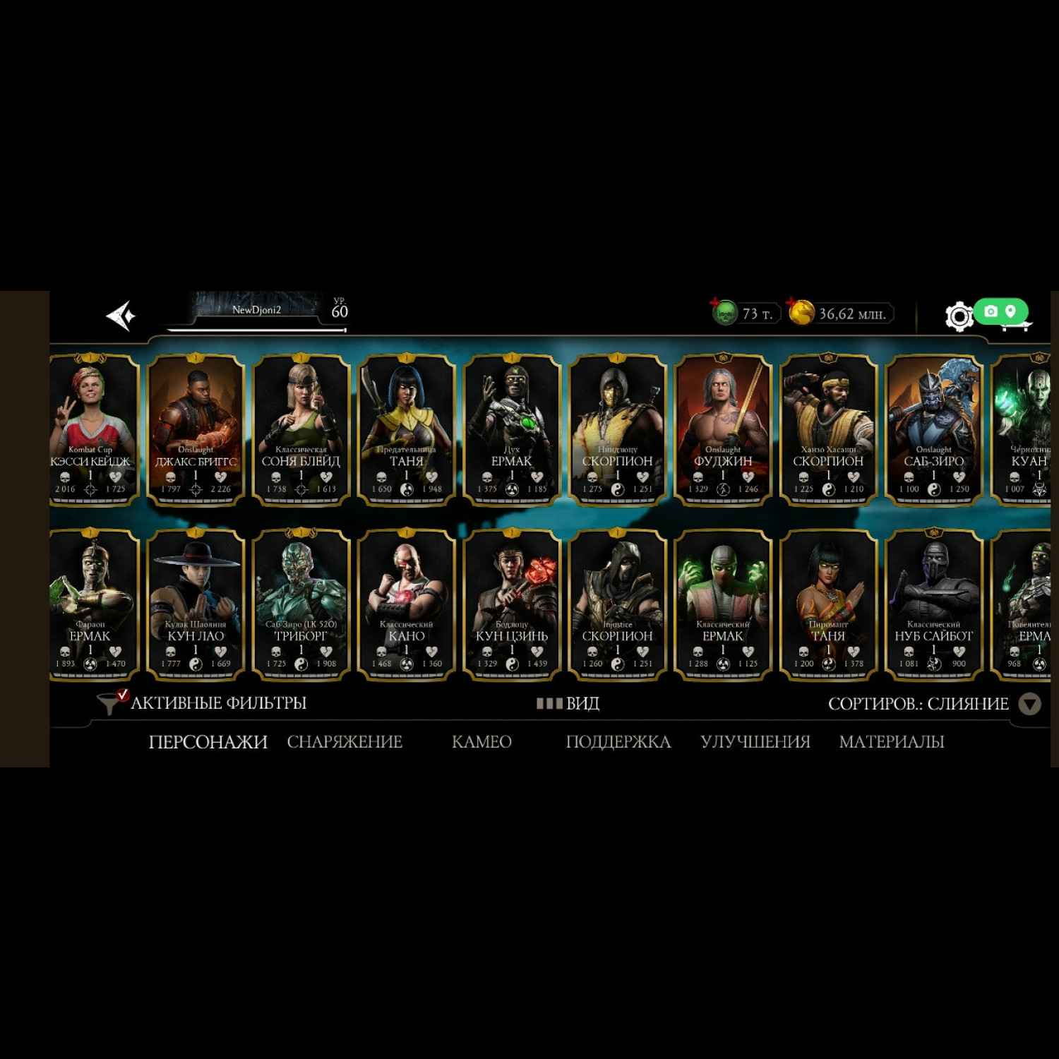 На аккаунте имеется Новая Фрост МК11 - 7 слияния. а так же Китана МК11 и Милина МК1 сразу Фул Х слияния! + Все остальные Алмазки из МК11 от 2 до 8 слияния. А вообще имеются 36 алмазок на аккаунте.