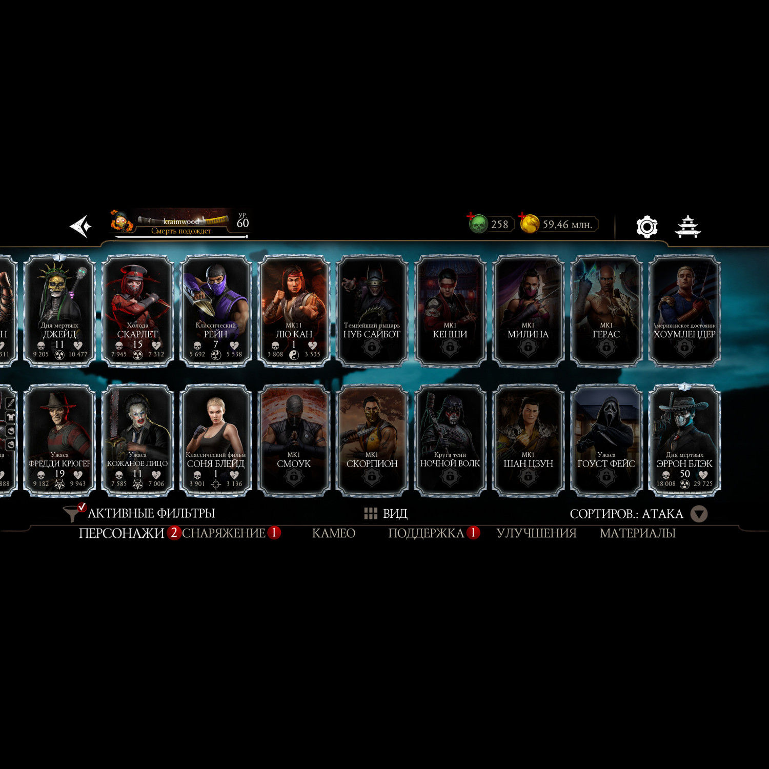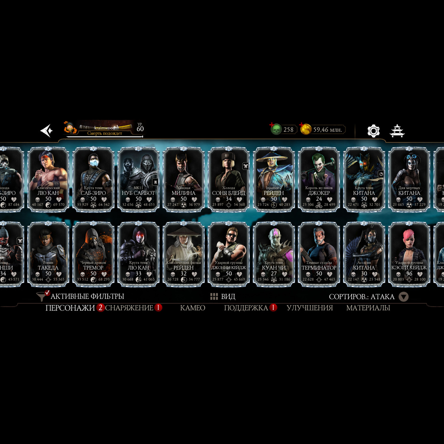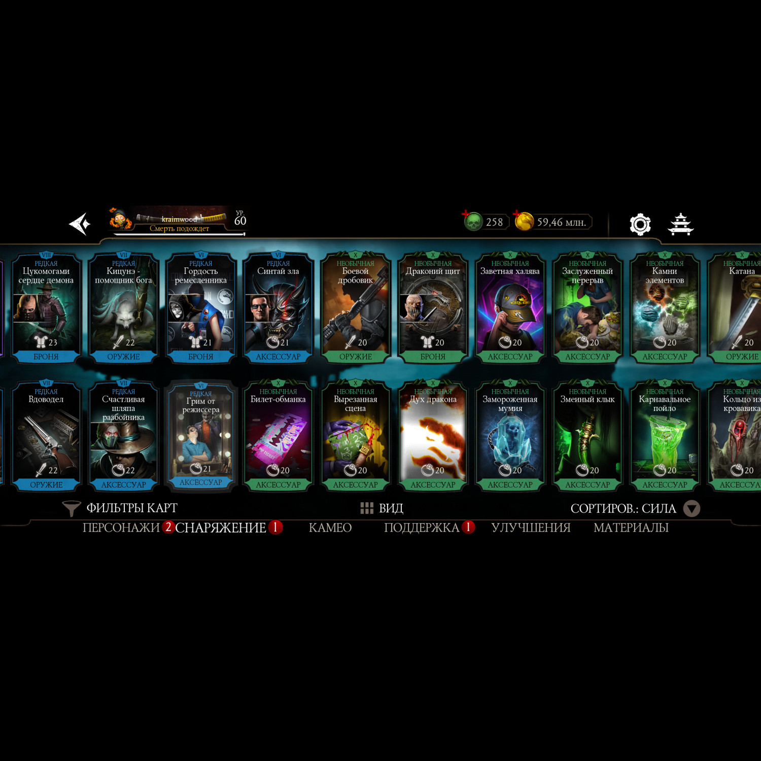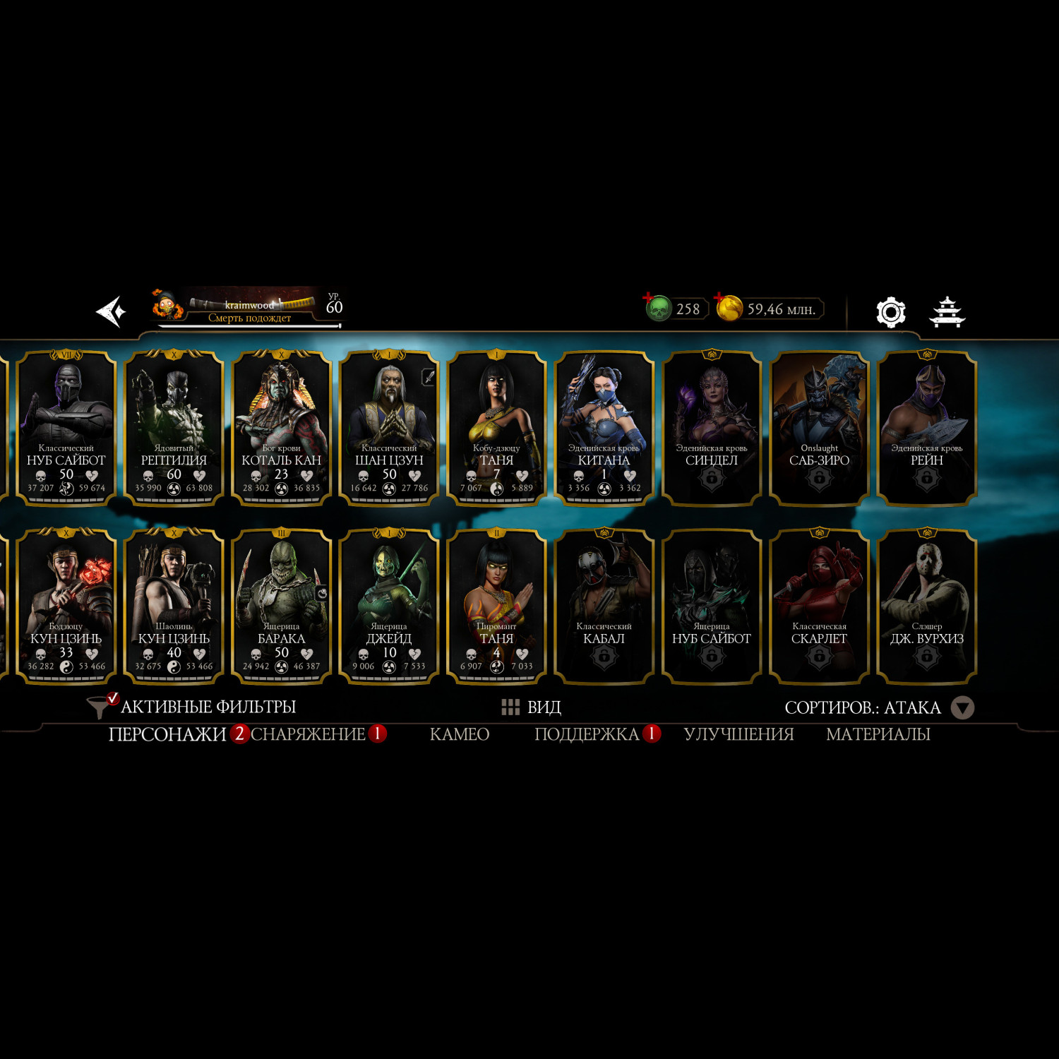 Почти полная коллекция алмазных карт, за неимением недавно вышедших бойцов. Имеется снаряжение с башен. На этом акаунте вполне комфортно будет играть, есть куда стремится.