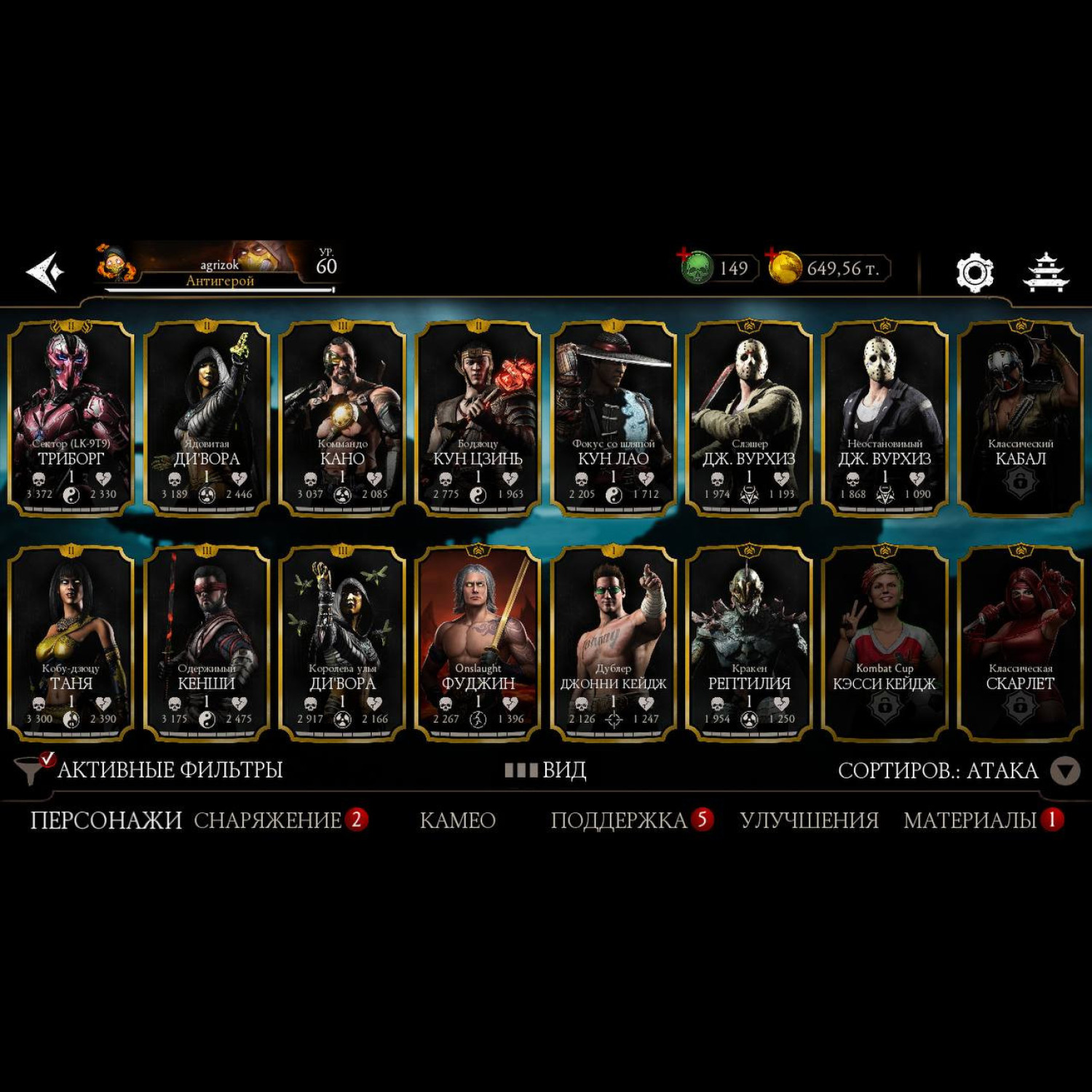 41 алмазка, прокаченые МК11 персонажи, почти все золотые(трех не хватает) есть 3 бруталити, 2 френдшипа
